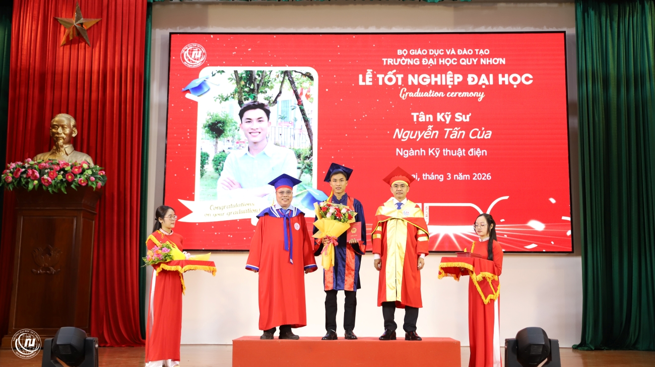 Buổi lễ khép lại với những khoảnh khắc đong đầy cảm xúc, những cái ôm thật chặt, những nụ cười rạng rỡ, những bó hoa tươi thắm và những bức ảnh lưu niệm lưu giữ thanh xuân. Từ đây, các tân cử nhân, tân kỹ sư chính thức bước vào hành trình mới, mang theo hành trang tri thức cùng những kỷ niệm đẹp dưới mái Trường Đại học Quy Nhơn.