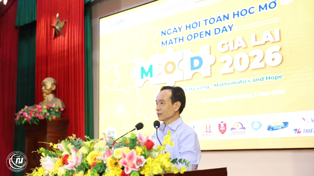 Phát biểu tại chương trình, TS. Đinh Anh Tuấn – Phó Hiệu trưởng Trường Đại học Quy Nhơn nhấn mạnh, Nhà trường vinh dự đồng hành cùng Viện Nghiên cứu cao cấp về Toán và Sở Giáo dục và Đào tạo Gia Lai tổ chức sự kiện với chủ đề “Toán học và Hy vọng”. Đây là lần thứ ba Ngày hội Toán học mở được tổ chức tại Quy Nhơn, khẳng định sức sống bền bỉ của một hoạt động học thuật giàu ý nghĩa cộng đồng, góp phần kết nối các nhà khoa học, giáo viên, học sinh, sinh viên và những người yêu Toán học.