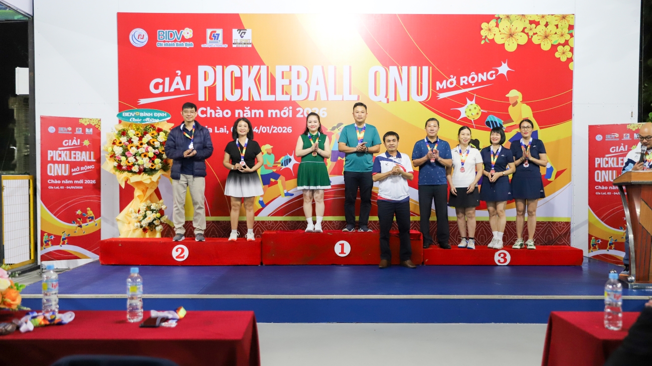 (SHL) – Sau ba ngày tranh tài sôi nổi từ ngày 02 đến 04/01/2026 tại tổ hợp sân Pickleball QNU, Giải Pickleball QNU mở rộng - Chào năm mới 2026 đã chính thức khép lại. Sự kiện đã để lại nhiều dấu ấn đẹp trong lòng vận động viên và khán giả, mở đầu cho một năm mới tràn đầy năng lượng, kết nối và thành công.