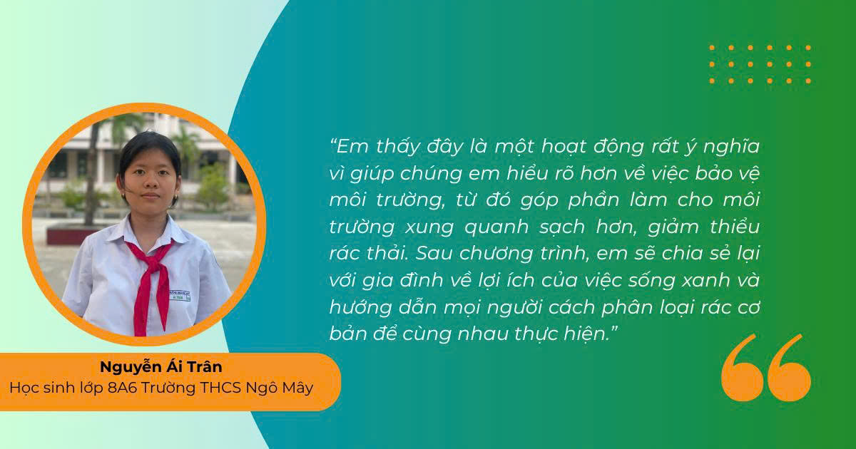 Với mục tiêu nâng cao nhận thức cộng đồng, đặc biệt là học sinh, về tầm quan trọng của việc phân loại rác thải rắn sinh hoạt tại nguồn, chương trình được triển khai như một giải pháp thiết thực, góp phần thúc đẩy bảo vệ môi trường và định hình lối sống bền vững. Thông qua việc lan tỏa thông điệp sống xanh, “Share Your Green” từng bước xây dựng những thói quen tích cực ngay từ sớm, giúp học sinh thích ứng với môi trường sống hiện đại, thân thiện với thiên nhiên. Sự hưởng ứng nhiệt tình từ đông đảo học sinh và giáo viên đã tạo nên sức lan tỏa rõ nét, khẳng định hiệu quả của chương trình trong cộng đồng học đường.