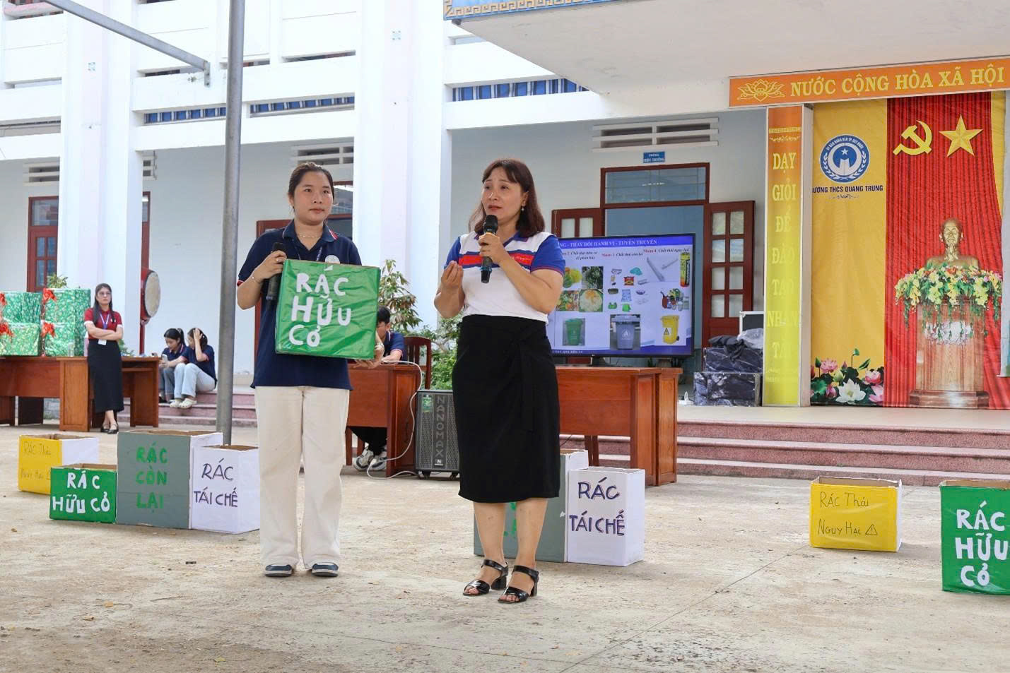 Đặc biệt, hoạt động thực hành phân loại rác tại nguồn đã tạo cơ hội để các em tự tay phân loại rác vào đúng thùng chứa tương ứng, qua đó củng cố kiến thức và từng bước hình thành thói quen áp dụng trong thực tế. Sự kết hợp giữa kiến thức và trải nghiệm đã tạo nên một không gian học tập sinh động, góp phần nuôi dưỡng tư duy sáng tạo, tinh thần hợp tác và ý thức hành động vì môi trường trong mỗi học sinh.