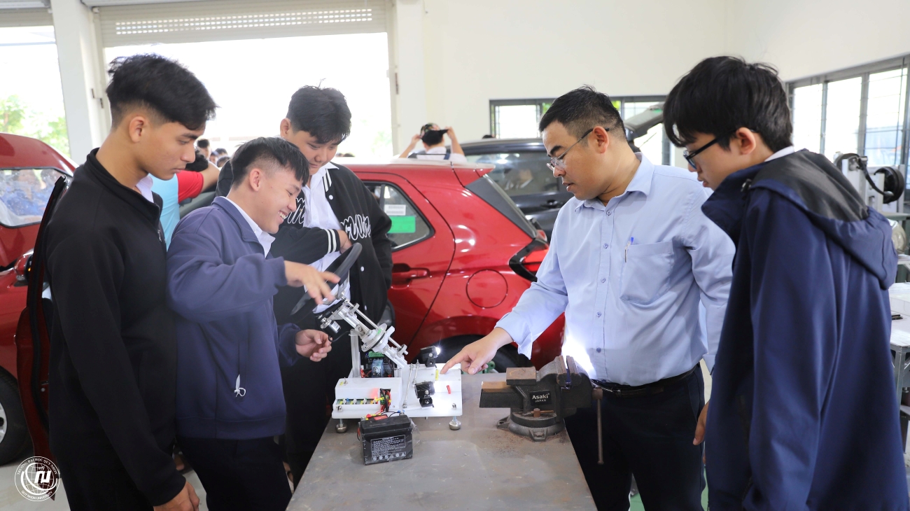 Những mô hình, động cơ tại Trung tâm thực hành ô tô QNU đã thu hút các bạn học sinh khám phá, trải nghiệm