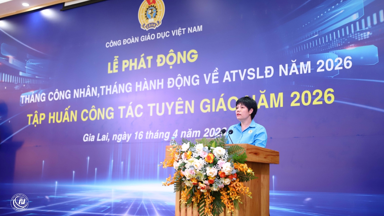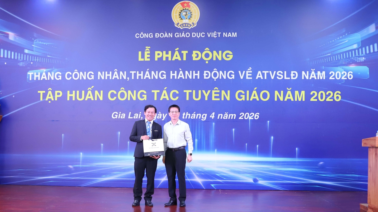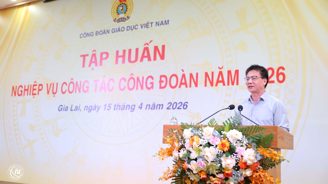 SHL - Trong hai ngày 15 - 16/4/2026, Công đoàn Giáo dục Việt Nam phối hợp với Trường Đại học Quy Nhơn tổ chức Hội nghị tập huấn nghiệp vụ công tác công đoàn, công tác tuyên giáo và Lễ phát động hưởng ứng Tháng Công nhân – Tháng hành động về an toàn, vệ sinh lao động năm 2026, với sự tham dự của 160 đại biểu đến từ các Đại học Quốc gia, Đại học vùng, công đoàn các Đại học, Trường Đại học, Trường Cao đẳng sư phạm và đơn vị trực thuộc Công đoàn giáo dục Việt Nam.