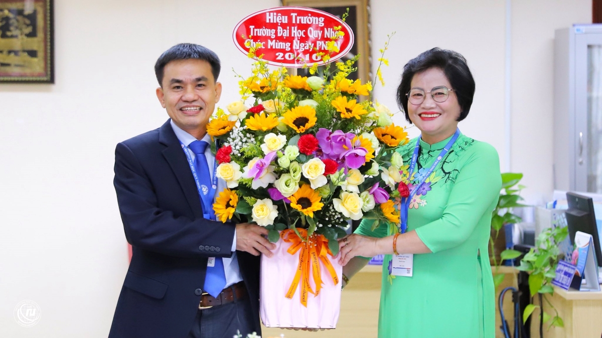 Sự gắn kết và đồng lòng của bộ phận nữ viên chức và người học là một trong những yếu tố đóng vai trò then chốt trong việc tạo nên khối đoàn kết toàn Trường. Tôi mong muốn các bạn, các anh chị em trong Trường tiếp tục phát huy tinh thần trên, thông qua đó đẩy mạnh thương hiệu Trường Đại học Quy Nhơn lan tỏa sâu rộng đến toàn xã hội. Tôi cam kết sẽ đảm bảo điều kiện làm việc, cơ sở vật chất và đời sống tinh thần để viên chức toàn Trường nói chung có thể yên tâm công tác, thực hiện sứ mệnh cống hiến cho nền giáo dục nước nhà. Một lần nữa, thay mặt tập thể lãnh đạo Nhà trường, tôi xin ghi nhận và gửi lời cảm ơn đến các nữ viên chức, giảng viên và người học tại QNU trong dịp đặc biệt này.”