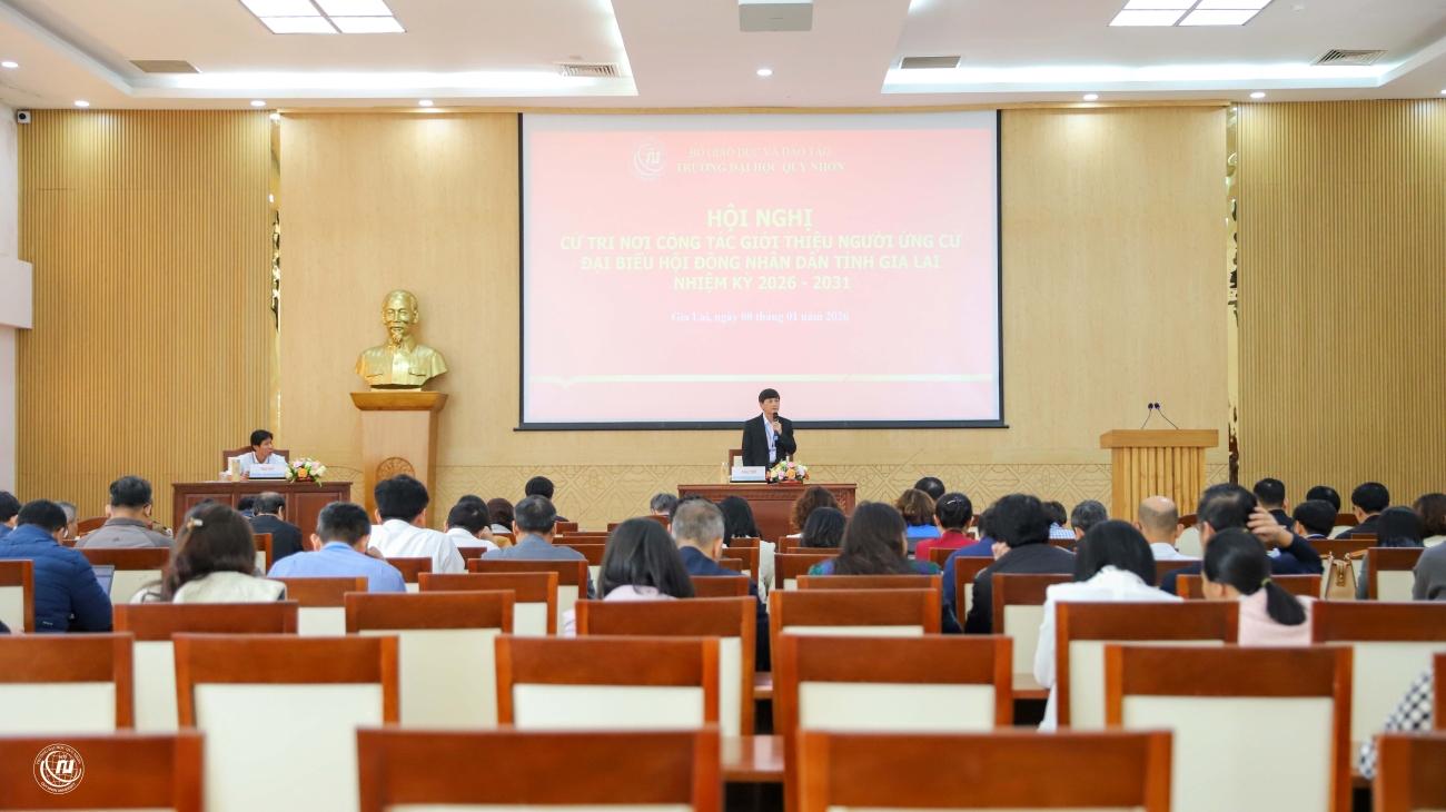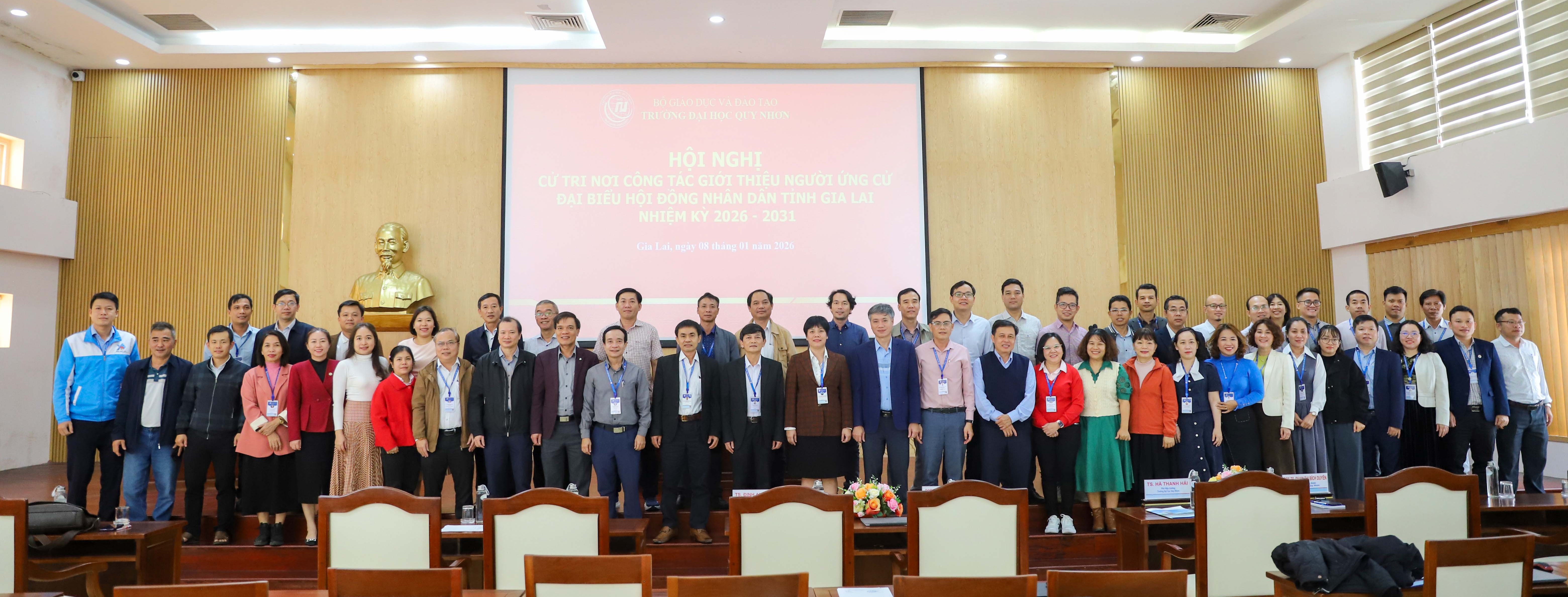 Với sự chủ trì của TS. Hà Thanh Hải - Phó Hiệu trưởng, các hội nghị được tổ chức đúng quy định, bảo đảm nguyên tắc công khai, dân chủ, khách quan và đúng thẩm quyền. Tại Hội nghị giới thiệu người ứng cử diễn ra vào ngày 05/1/2026, Ban Giám hiệu cùng Ban Chấp hành Công đoàn Trường Đại học Quy Nhơn đã thống nhất giới thiệu PGS.TS. Đoàn Đức Tùng - Hiệu trưởng Nhà trường tham gia tái cử đại biểu Hội đồng nhân dân tỉnh Gia Lai nhiệm kỳ 2026 - 2031. Các đại biểu tham dự hội nghị đã nhất trí 100% và khẳng định PGS.TS. Đoàn Đức Tùng đáp ứng đầy đủ tiêu chuẩn, điều kiện theo quy định.