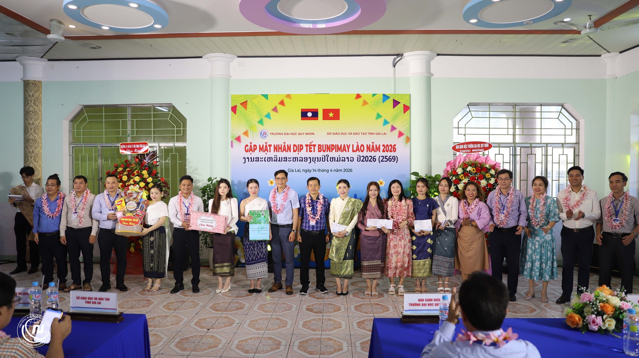 (SHL) - Chiều 14/4/2026, trong không khí rộn ràng đón năm mới của đất nước Triệu Voi, Trường Đại học Quy Nhơn đã tổ chức buổi gặp mặt chào mừng Tết cổ truyền Bunpimay – Lào năm 2026 dành cho lưu học sinh Lào đang học tập tại trường. Chương trình không chỉ mang đến không gian văn hóa đậm đà bản sắc dân tộc mà còn thể hiện sự quan tâm sâu sắc của Nhà trường, góp phần vun đắp mối quan hệ hữu nghị đặc biệt giữa hai dân tộc Việt Nam – Lào.