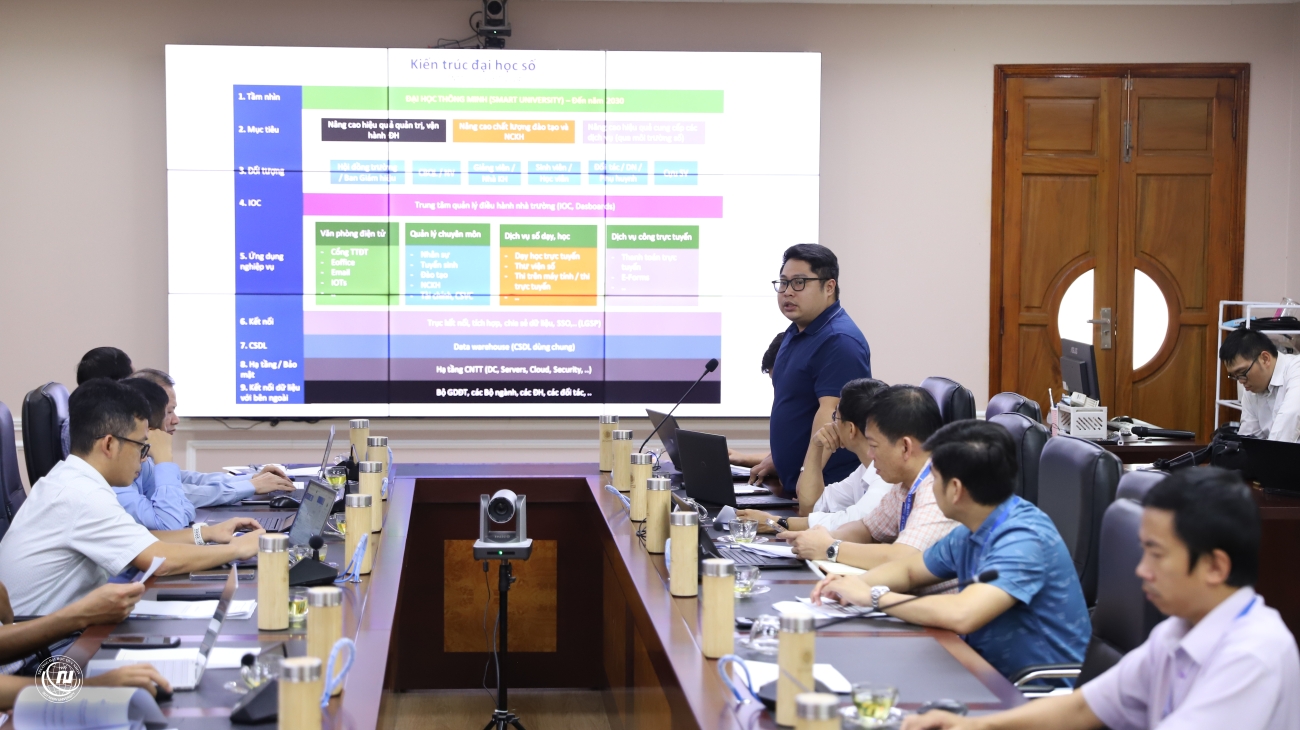 Trao đổi tại buổi làm việc, đại diện đoàn công tác nhấn mạnh rằng chuyển đổi số cần được thực hiện một cách tổng thể, toàn diện, kế thừa tối đa hiện trạng, khắc phục các hạn chế hiện hữu, đồng thời áp dụng công nghệ hiện đại để nâng cao hiệu quả quản trị và chất lượng đào tạo. Kiến trúc đại học số được đề xuất cho phép nhiều hệ thống và nhà cung cấp cùng tham gia trên nền tảng chuẩn tích hợp, đảm bảo tính linh hoạt và khả năng mở rộng.