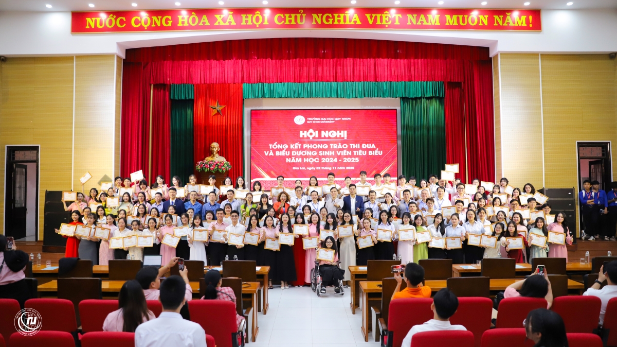 (CTSV&HTDN) – Sáng ngày 02/11/2025, Trường Đại học Quy Nhơn tổ chức Hội nghị Tổng kết phong trào thi đua và Biểu dương sinh viên tiêu biểu năm học 2024 - 2025. Đây là hoạt động thường niên nhằm tôn vinh các tập thể và cá nhân có thành tích xuất sắc trong học tập, nghiên cứu khoa học và công tác quản lý lớp, ghi nhận tinh thần nỗ lực, ý chí vươn lên và những đóng góp tích cực của sinh viên trong năm học vừa qua.
