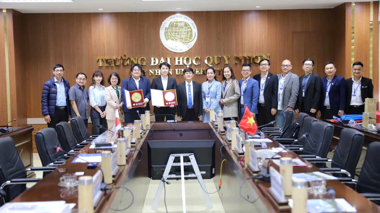 SHL - Ngày 26/12, Trường Đại học Quy Nhơn (QNU) đã có buổi làm việc với Ông Sakai Tsuneharu – Trưởng ban Tranh cử Hạ viện (Quốc hội Nhật Bản) cơ sở Quận 5 tỉnh Miyagi của Đảng Duy Tân Nhật Bản, cùng đại diện Trung tâm Giao lưu Nhật – Việt. Buổi làm việc nhằm trao đổi, tăng cường hợp tác trong lĩnh vực giáo dục, nghiên cứu khoa học, giao lưu văn hóa và mở rộng cơ hội thực tập, việc làm cho sinh viên, đồng thời thúc đẩy kết nối với các đối tác Nhật Bản trong những lĩnh vực công nghệ cao.