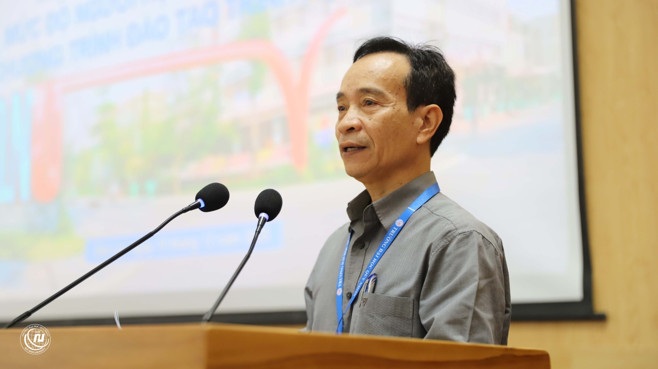 TS. Nguyễn Tiến Phùng – Trưởng phòng P. KT&BĐCL với tham luận về Quy định đo lường, đánh giá mức độ người học đạt CĐR CTĐT trình độ đại học