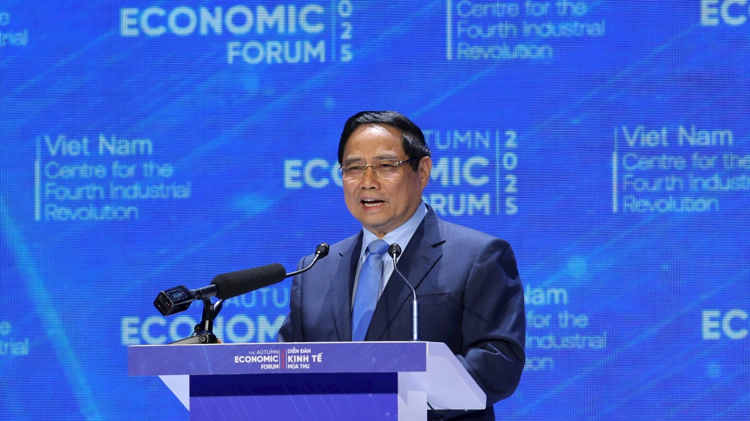 Thủ tướng Phạm Minh Chính phát biểu tại Diễn đàn Kinh tế mùa Thu 2025 (Nguồn: TTXVN).