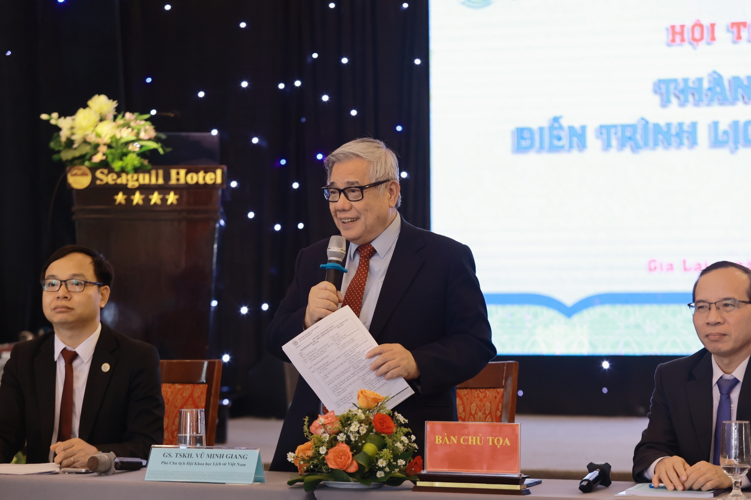 GS.TSKH. Vũ Minh Giang - Chủ tịch Hội đồng Khoa học và Đào tạo Đại học Quốc gia Hà Nội, Phó Chủ tịch Hội Khoa học Lịch sử Việt Nam, Ủy viên Hội đồng Di sản Quốc gia Việt Nam phát biểu.