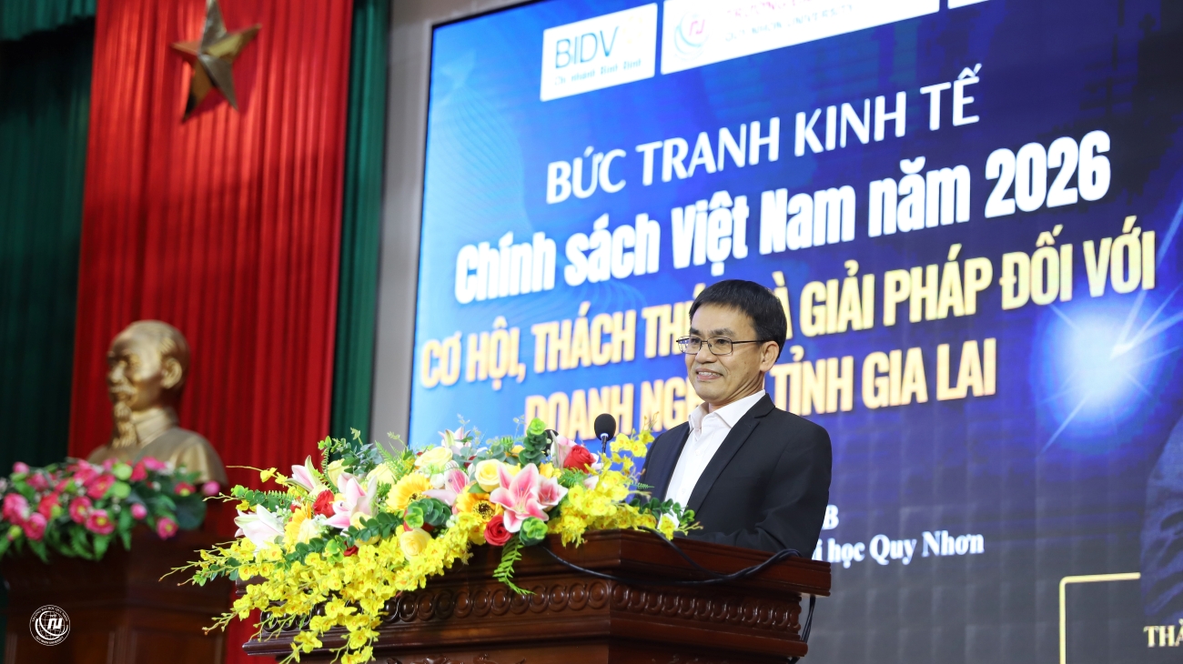 (SHL) – Trong bối cảnh kinh tế - tài chính toàn cầu liên tục biến động, việc nắm bắt thông tin chính xác và kịp thời không chỉ là nhu cầu của doanh nghiệp mà còn là nền tảng để các cơ sở giáo dục nâng cao chất lượng đào tạo, nghiên cứu. Nhằm đáp ứng yêu cầu đó, Trường Đại học Quy Nhơn phối hợp cùng Ngân hàng BIDV Bình Định, Hội Doanh nhân trẻ tỉnh Gia Lai tổ chức báo cáo “Bức tranh kinh tế - chính sách Việt Nam năm 2026: Cơ hội, thách thức và giải pháp đối với doanh nghiệp tỉnh Gia Lai” với sự tham gia của TS. Cấn Văn Lực - Chuyên gia Kinh tế trưởng BIDV, thành viên Hội đồng Tư vấn chính sách của Thủ tướng Chính phủ. Chương trình không chỉ mang đến những góc nhìn chiến lược, thiết thực, mà còn cung cấp thông tin cập nhật, phân tích chuyên sâu cùng các giải pháp thực tiễn từ chuyên gia về kinh tế - chính sách. Đây sẽ là nền tảng quan trọng giúp doanh nghiệp và Nhà trường định hình hướng đi trong bối cảnh mới, vừa nhiều thách thức, vừa giàu tiềm năng.