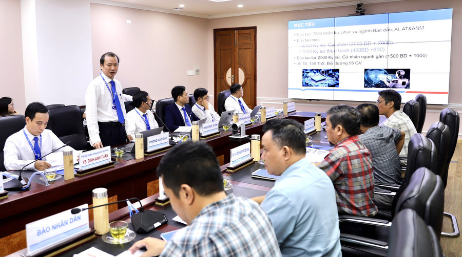 Tại buổi họp báo, đại diện lãnh đạo nhà trường giới thiệu thông tin tuyển sinh năm 2025; tổng quan Đề án phát triển nguồn nhân lực trong các lĩnh vực công nghiệp bán dẫn, AI, an toàn và an ninh mạng giai đoạn 2025 - 2030. Trong đó, trường tổ chức 4 ngành đào tạo về công nghiệp bán dẫn, AI, an toàn và an ninh mạng theo đề án, gồm: Kỹ thuật điện tử - viễn thông (chuyên ngành Thiết kế vi mạch), Vật lý kỹ thuật (chuyên ngành Công nghệ gia công, đóng gói và kiểm thử vi mạch), AI, Công nghệ thông tin (chuyên ngành An toàn - an ninh mạng).