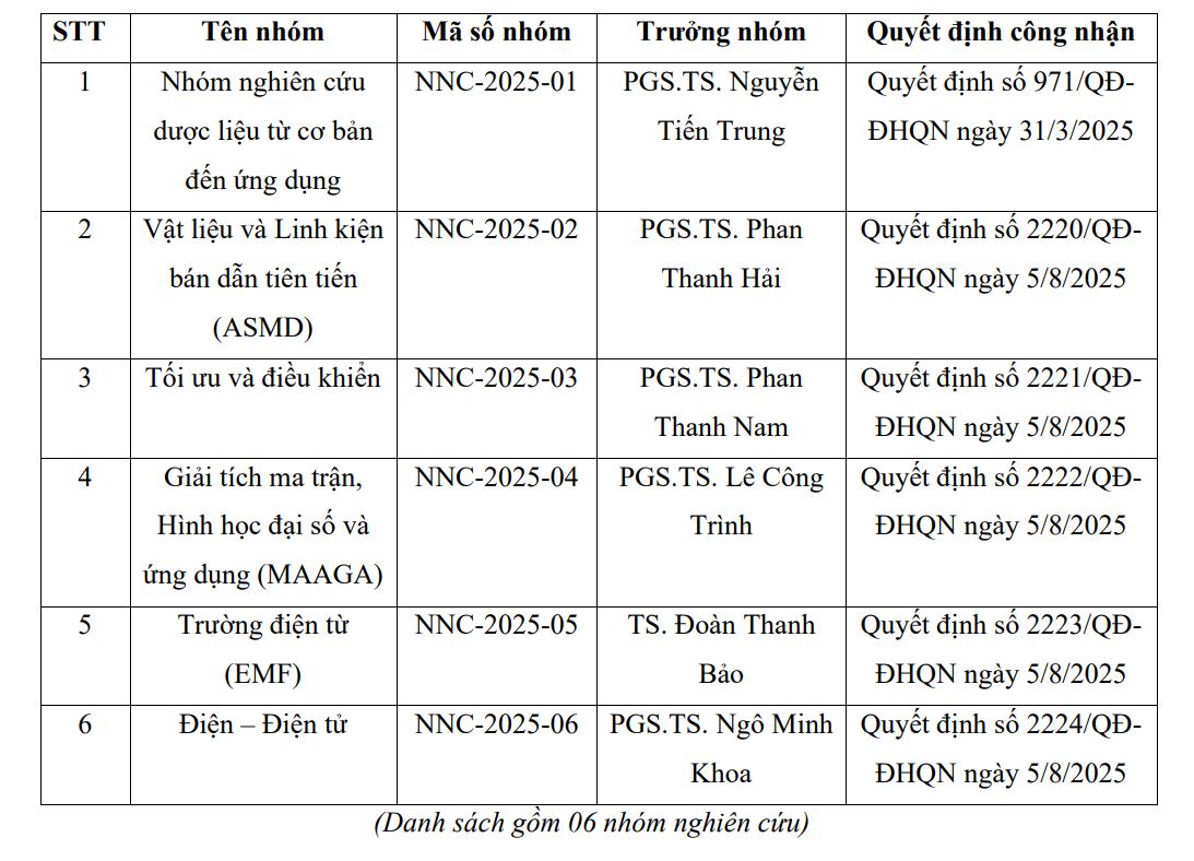 DANH SÁCH CÁC NHÓM NGHIÊN CỨU ĐƯỢC CÔNG NHẬN