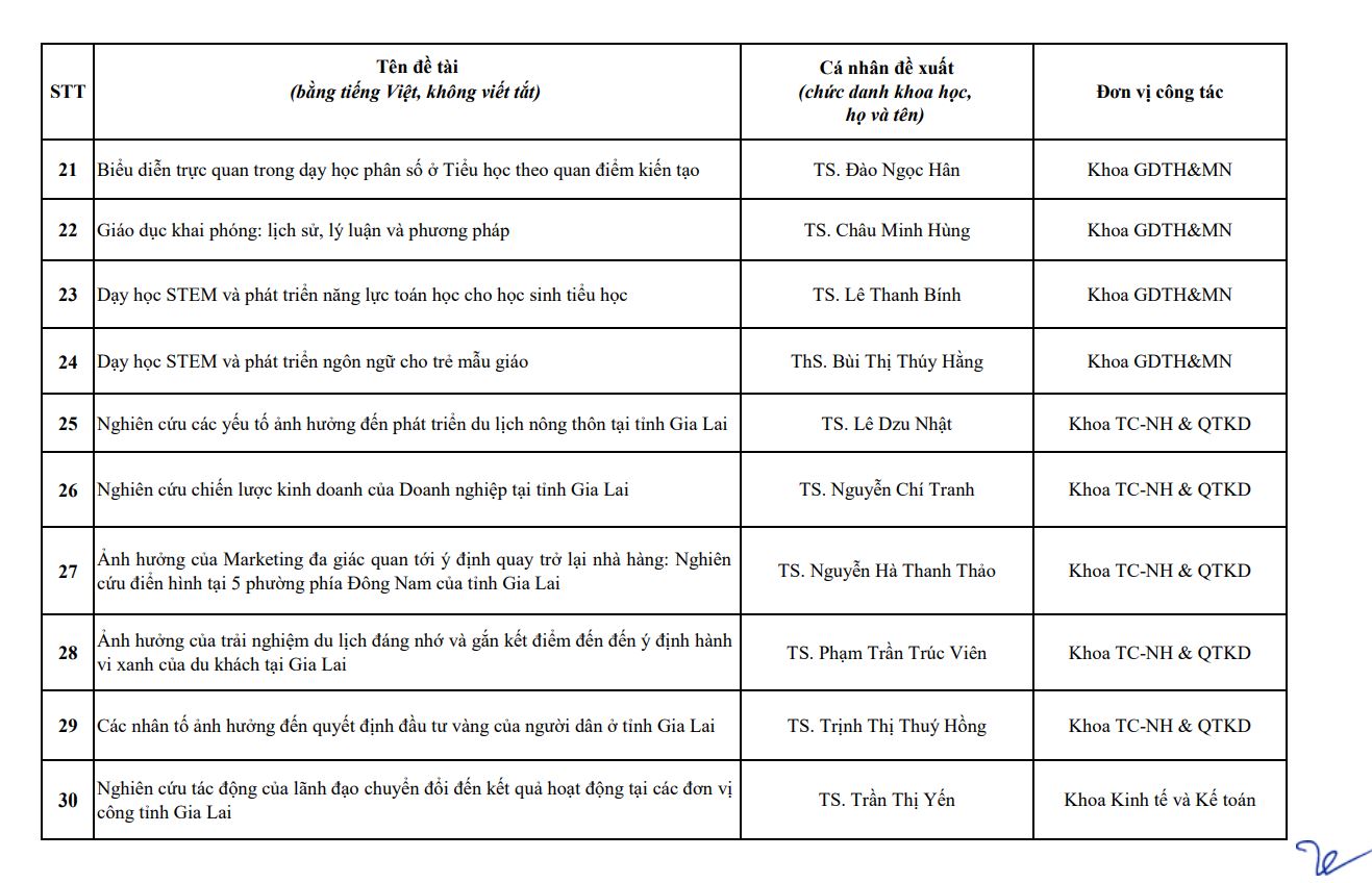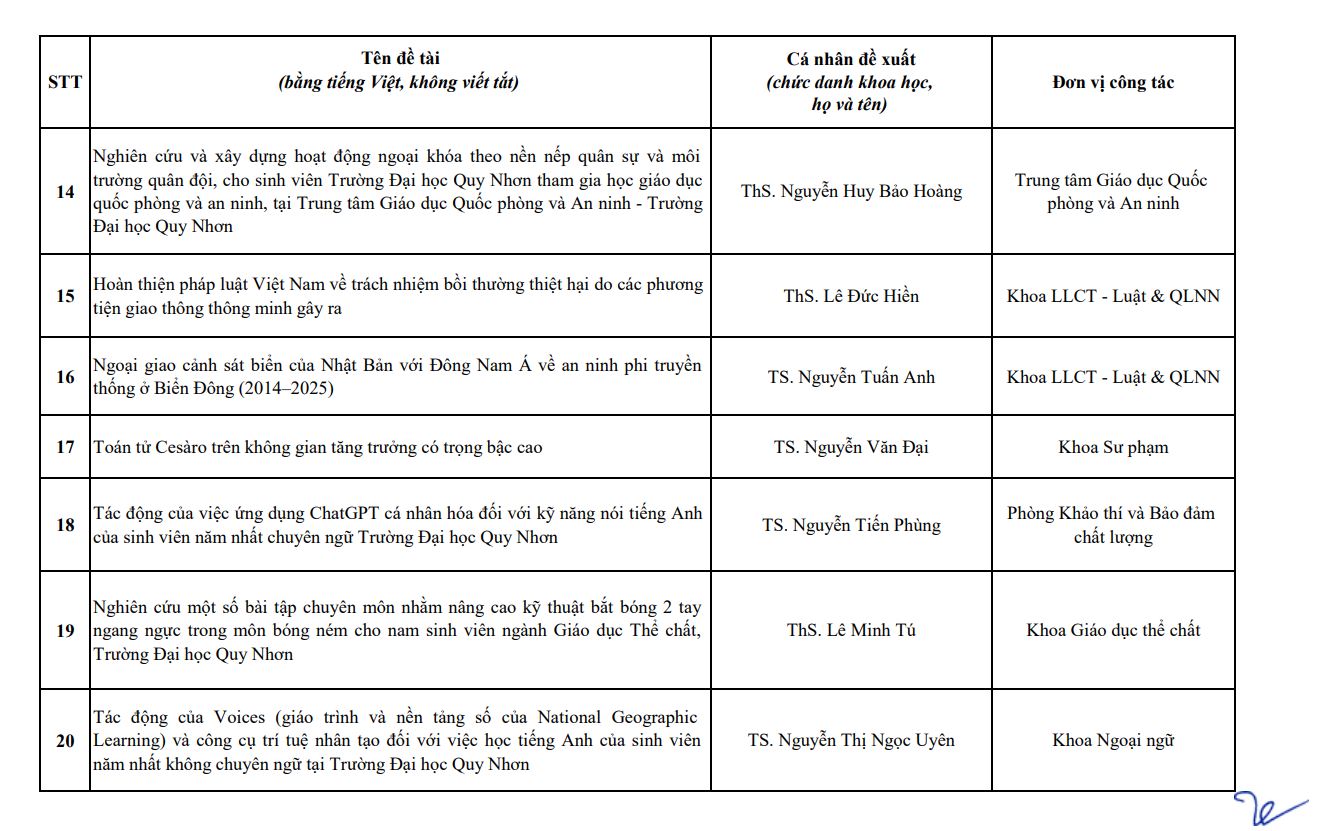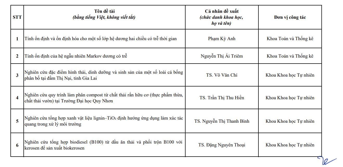 Căn cứ Công văn số 2656/ĐHQN-KHCNHTQT ngày 04 tháng 9 năm 2025 của Hiệu trưởng Trường Đại học Quy Nhơn về việc đề xuất đề tài KH&CN cấp Trường năm 2026;