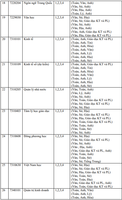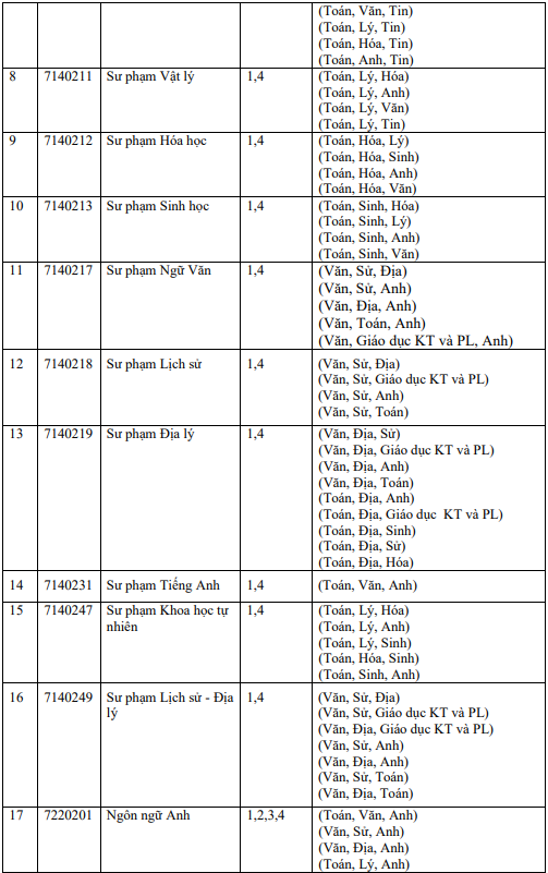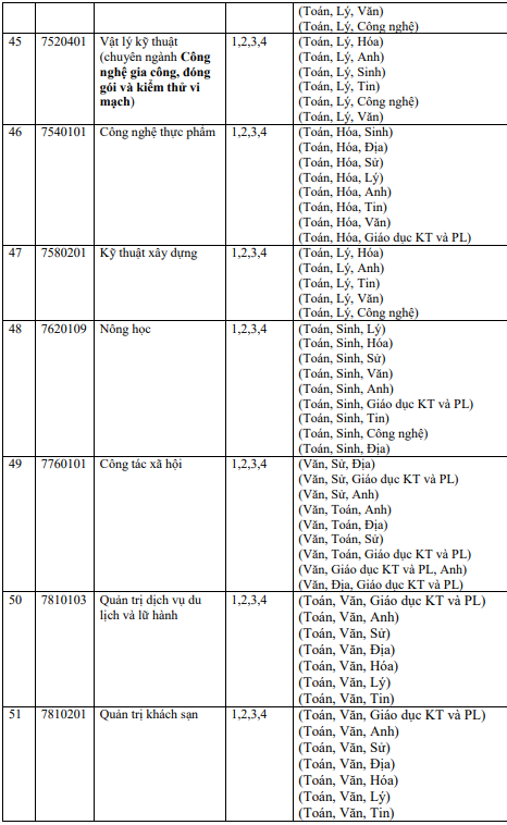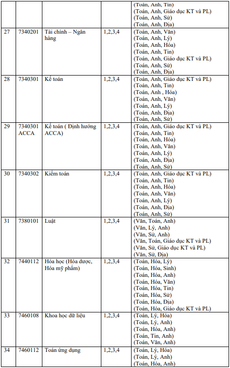 4. Các ngành, tổ hợp môn xét tuyển