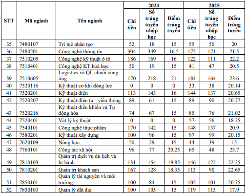 Xét tuyển thẳng: theo Quy chế tuyển sinh của Bộ Giáo dục và Đào tạo vào các ngành phù hợp theo Phụ lục 1.