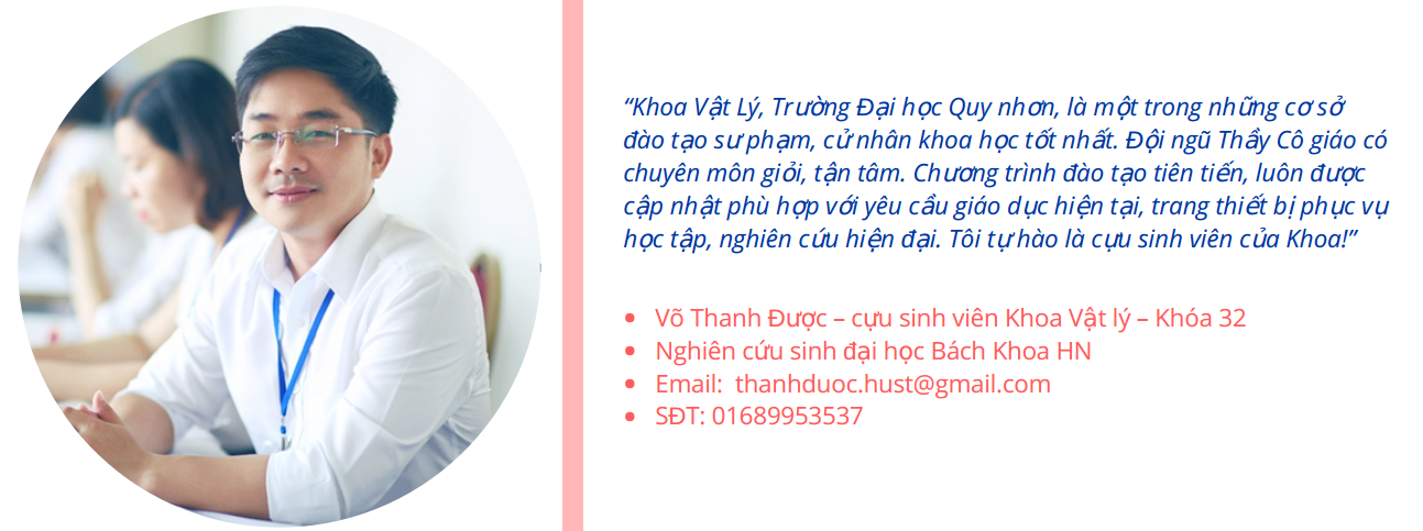 “The Department of Physics, Quy Nhon University, is one of the best places for training teachers and Bachelors of Science. The faculty members are all highly-qualified and dedicated. Additionally, the training program is always up-to-date in accordance with current educational requirements, together with modern learning and research equipment. I am proud to be one of the alumni of the Department of Physics.”