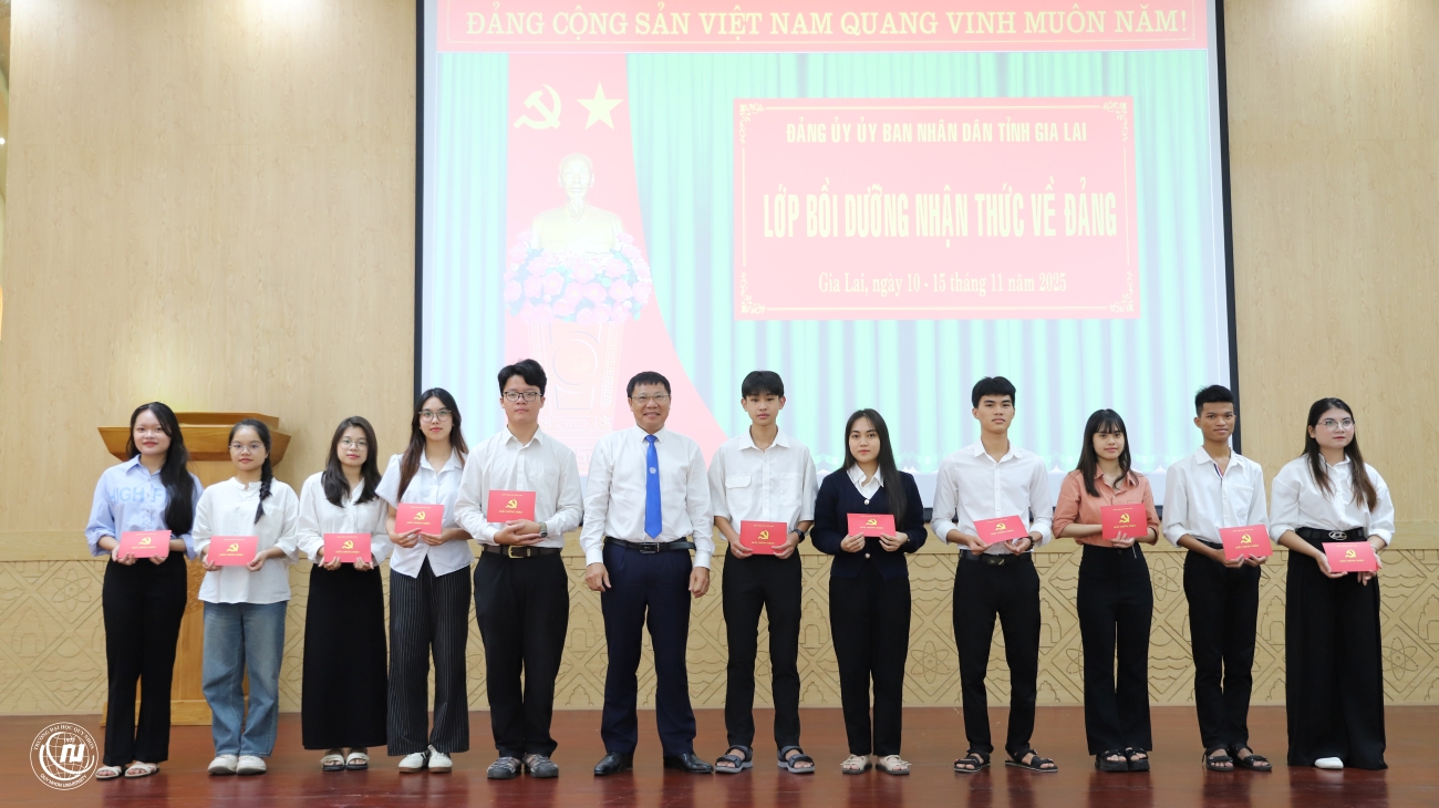 ĐU - Sáng ngày 15/11/2025, tại Đảng bộ Trường Đại học Quy Nhơn, Ban Thường vụ Đảng ủy Ủy ban nhân dân tỉnh tổ chức lễ bế giảng lớp bồi dưỡng nhận thức về Đảng cho 101 học viên là các quần chúng ưu tú của Đảng bộ Trường Đại học Quy Nhơn.