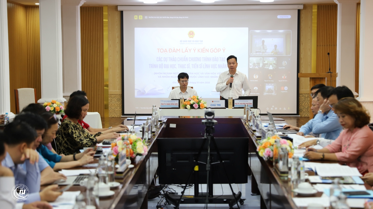 (SHL) – Nhằm chuẩn hóa chương trình đào tạo các ngành thuộc lĩnh vực Nhân văn ở các trình độ đại học, thạc sĩ và tiến sĩ, ngày 31/10/2025, Vụ Giáo dục Đại học - Bộ Giáo dục và Đào tạo phối hợp với Trường Đại học Quy Nhơn tổ chức Tọa đàm lấy ý kiến góp ý đối với các dự thảo Chuẩn chương trình đào tạo. Chương trình được tổ chức theo hình thức kết hợp trực tiếp và trực tuyến, thu hút sự tham gia của đông đảo đại biểu từ các cơ sở giáo dục đại học trên toàn quốc.