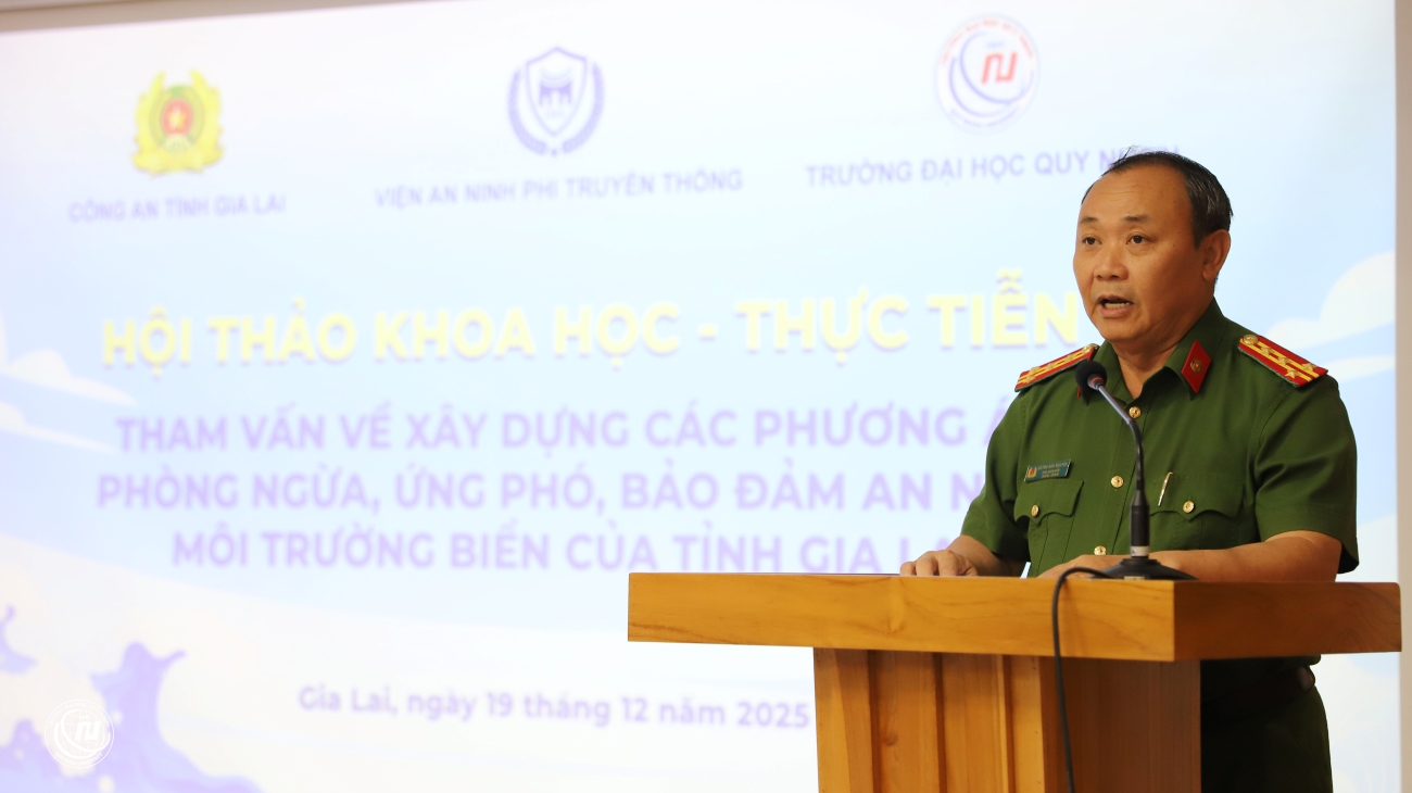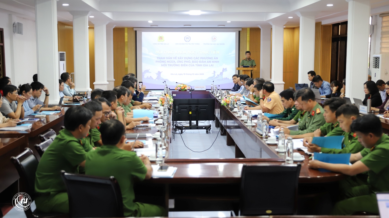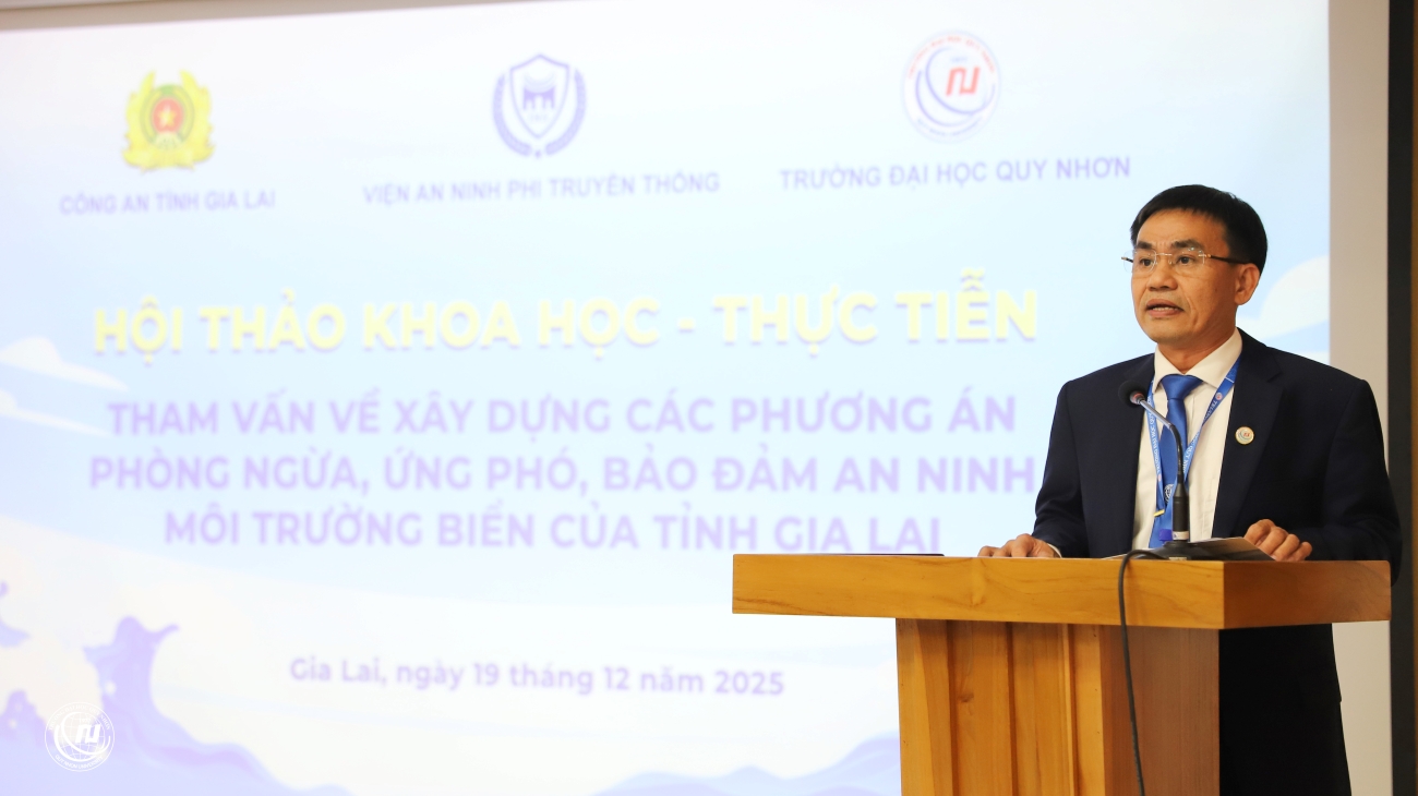 (SHL) – Trước yêu cầu phát triển bền vững và thực trạng an ninh môi trường biển của tỉnh, ngày 19/12/2025, Viện An ninh phi truyền thống (ĐHQG Hà Nội) phối hợp cùng Công an tỉnh Gia Lai và Trường Đại học Quy Nhơn đã tổ chức Hội thảo khoa học “Tham vấn về xây dựng các phương án phòng ngừa, ứng phó, bảo đảm an ninh môi trường biển của tỉnh Gia Lai”. Hội thảo hướng đến việc đề xuất các giải pháp, phương án thiết thực nhằm góp phần xây dựng tỉnh Gia Lai phát triển bền vững, an toàn và thực hiện thắng lợi Nghị quyết của Đảng bộ tỉnh.