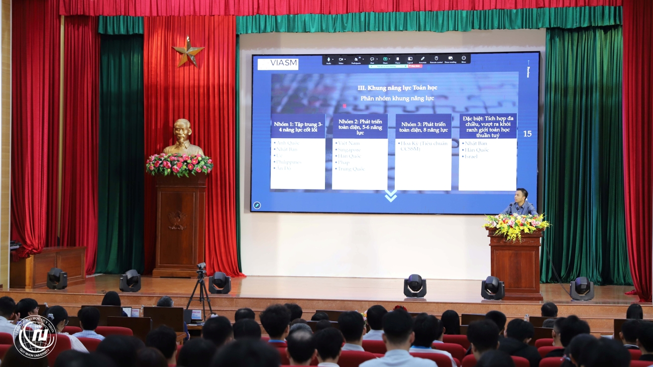 Theo TS. Đinh Anh Tuấn, sau gần 50 năm xây dựng và phát triển, Trường Đại học Quy Nhơn đã từng bước khẳng định vị thế là cơ sở giáo dục đại học đa ngành, định hướng ứng dụng, với mục tiêu đến năm 2030 đạt chuẩn chất lượng khu vực và nằm trong top 100 QS châu Á. Trong chiến lược phát triển, Trường chú trọng nâng cao danh tiếng học thuật, năng lực nghiên cứu, mức độ quốc tế hóa và chất lượng trải nghiệm học tập. Trong đó, Toán học được xem là lĩnh vực nền tảng và niềm tự hào nổi bật của Nhà trường. Khoa Toán và Thống kê (QNU) nhiều năm qua luôn là điểm sáng trong đào tạo, nghiên cứu và hợp tác quốc tế. Đặc biệt, Khoa là một trong ba đơn vị Toán học cả nước được đầu tư trọng điểm trong Chương trình quốc gia phát triển Toán học giai đoạn 2021–2030, với sứ mệnh trở thành đầu tàu phát triển Toán học ở miền Trung – Tây Nguyên.