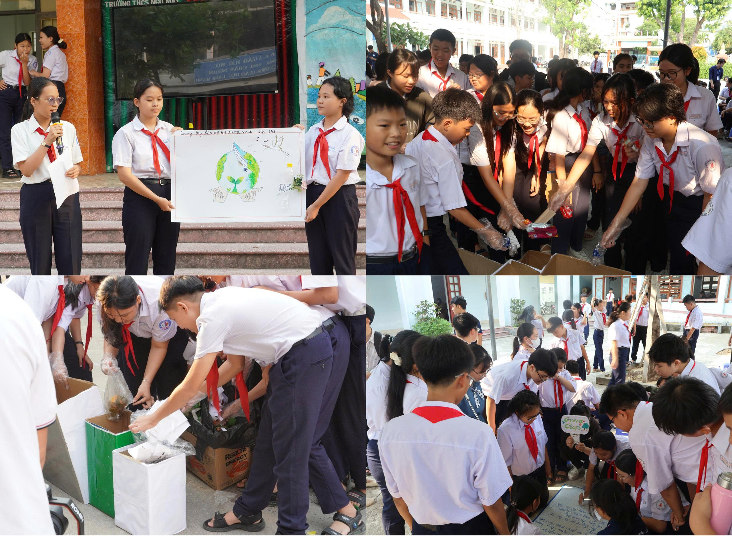 Đặc biệt, hoạt động thực hành phân loại rác tại nguồn đã tạo cơ hội để các em tự tay phân loại rác vào đúng thùng chứa tương ứng, qua đó củng cố kiến thức và từng bước hình thành thói quen áp dụng trong thực tế. Sự kết hợp giữa kiến thức và trải nghiệm đã tạo nên một không gian học tập sinh động, góp phần nuôi dưỡng tư duy sáng tạo, tinh thần hợp tác và ý thức hành động vì môi trường trong mỗi học sinh.