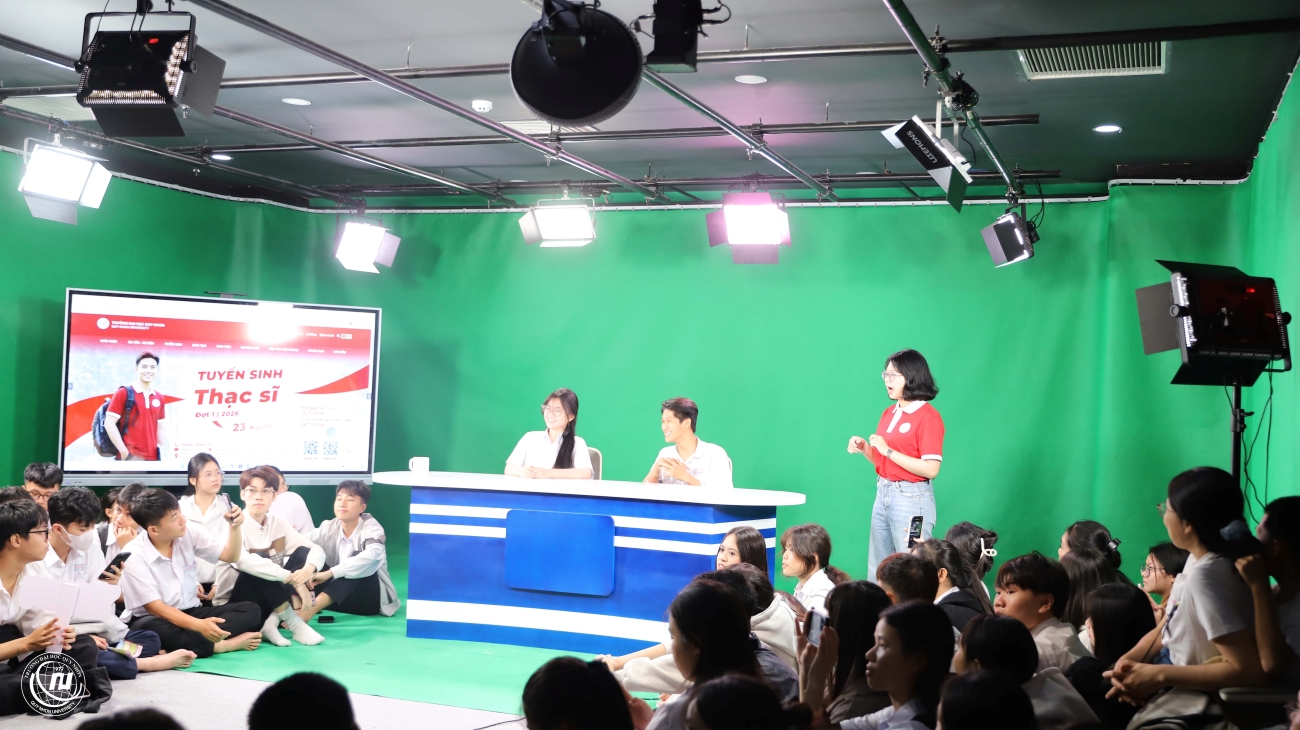 Gen Z THPT Số 1 Nguyễn Thái Học thử sức trong vai trò biên tập viên và khám phá trường quay QNU Studio
