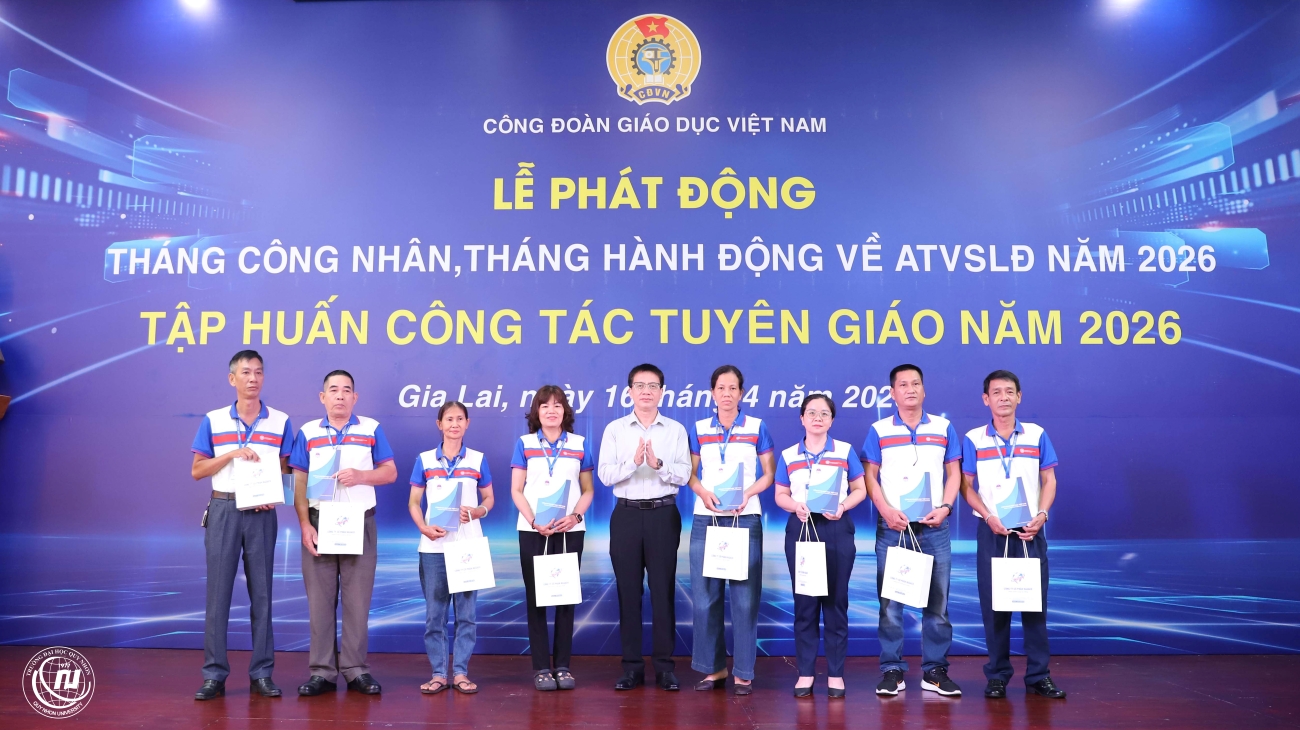 SHL - Trong hai ngày 15 - 16/4/2026, Công đoàn Giáo dục Việt Nam phối hợp với Trường Đại học Quy Nhơn tổ chức Hội nghị tập huấn nghiệp vụ công tác công đoàn, công tác tuyên giáo và Lễ phát động hưởng ứng Tháng Công nhân – Tháng hành động về an toàn, vệ sinh lao động năm 2026, với sự tham dự của 160 đại biểu đến từ các Đại học Quốc gia, Đại học vùng, công đoàn các Đại học, Trường Đại học, Trường Cao đẳng sư phạm và đơn vị trực thuộc Công đoàn giáo dục Việt Nam.