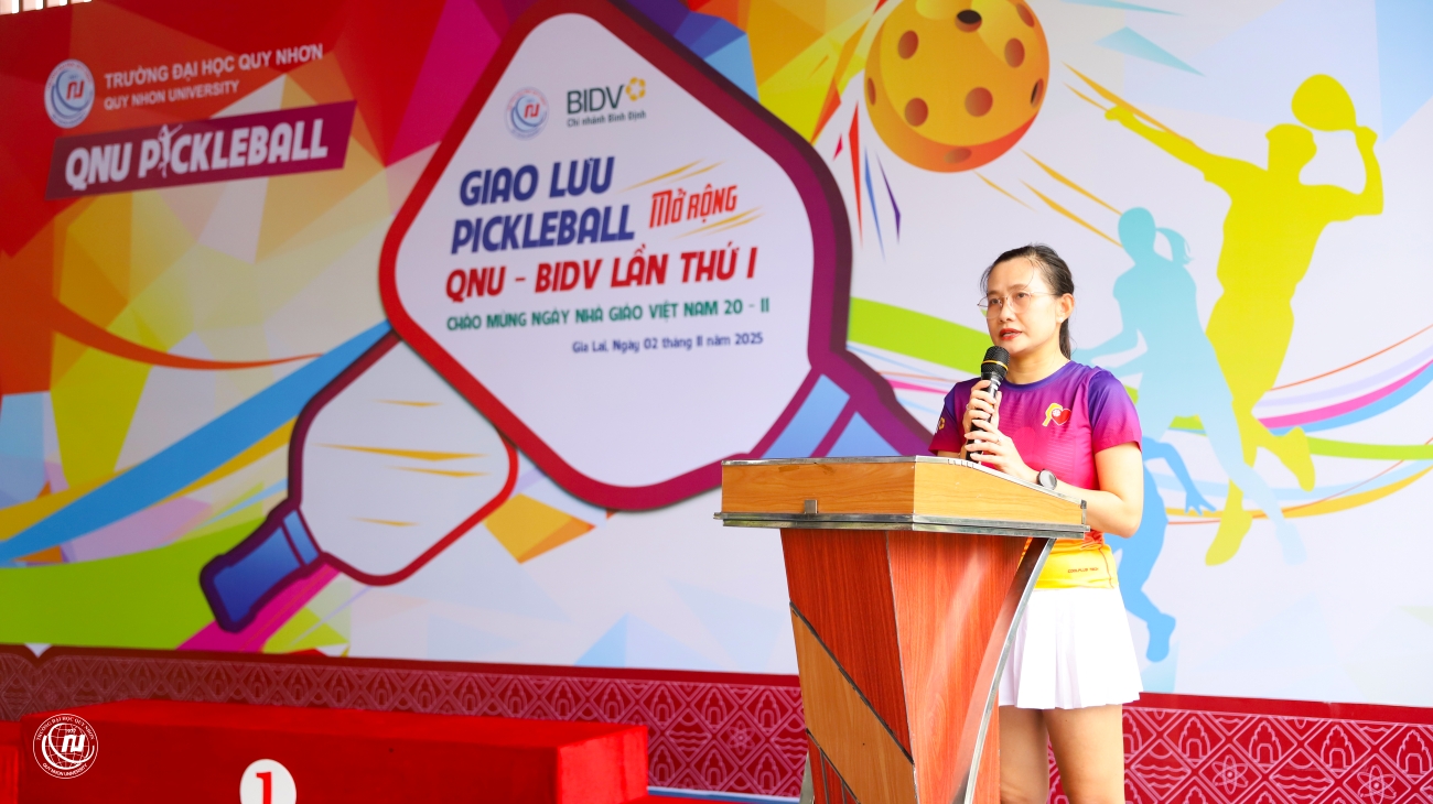 Phát biểu tại sự kiện, bà Nguyễn Thị Ngọc Quỳnh - Giám đốc BIDV chi nhánh Bình Định gửi lời cảm ơn chân thành đến Trường Đại học Quy Nhơn vì sự phối hợp và tạo điều kiện thuận lợi để các viên chức của BIDV Bình Bịnh có cơ hội thi đấu trên tổ hợp sân pickleball hiện đại vừa được Nhà trường đầu tư xây dựng. Bà đánh giá cao mối quan hệ hợp tác toàn diện, bền vững giữa hai đơn vị trong suốt nhiều năm qua, đồng thời kỳ vọng giải đấu sẽ để lại nhiều dấu ấn đẹp, góp phần lan tỏa tinh thần đoàn kết, gắn bó giữa BIDV Bình Định và Trường Đại học Quy Nhơn.