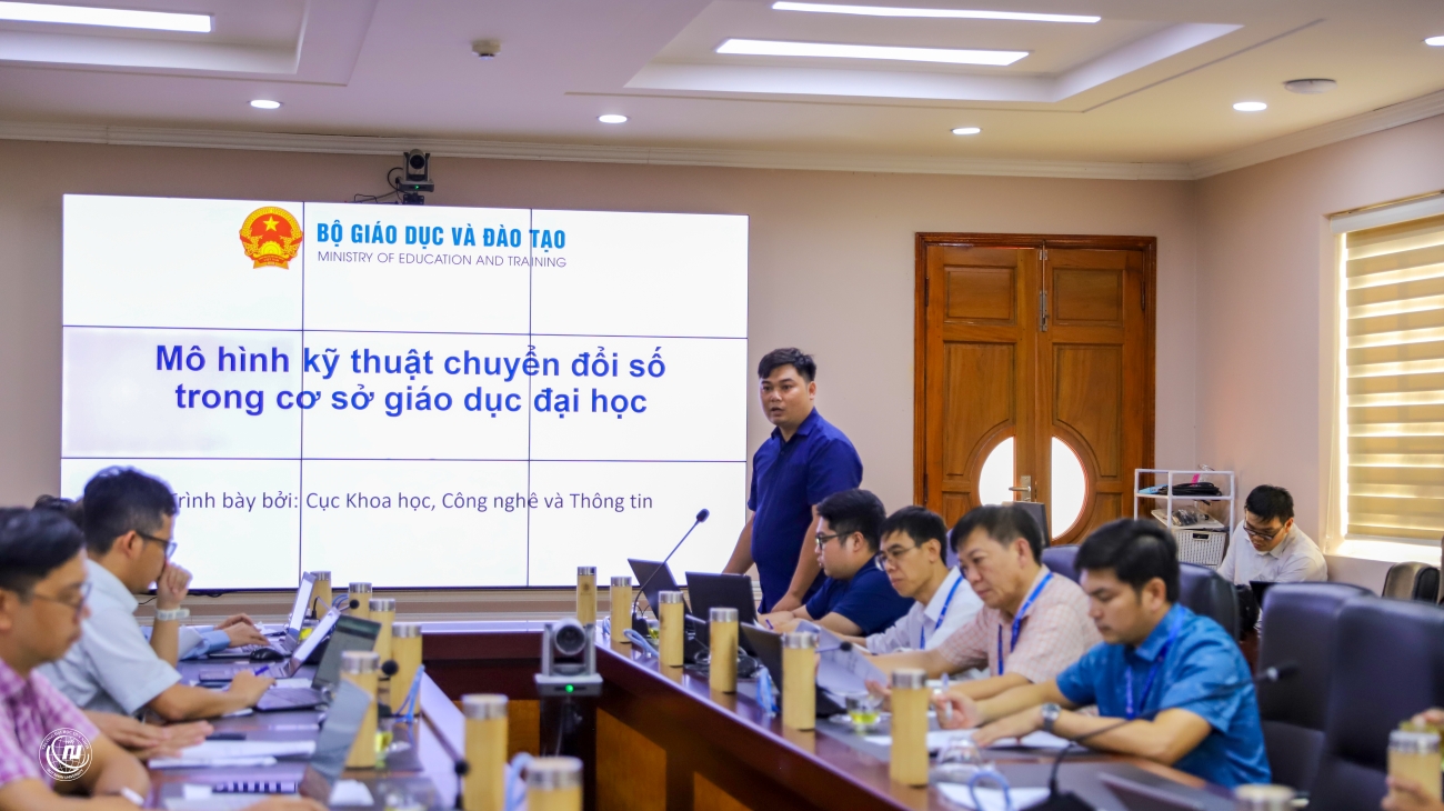 Đại diện Cục Khoa học, Công nghệ và Thông tin trình bày mô hình kỹ thuật chuyển đổi số trong cơ sở giáo dục đại học