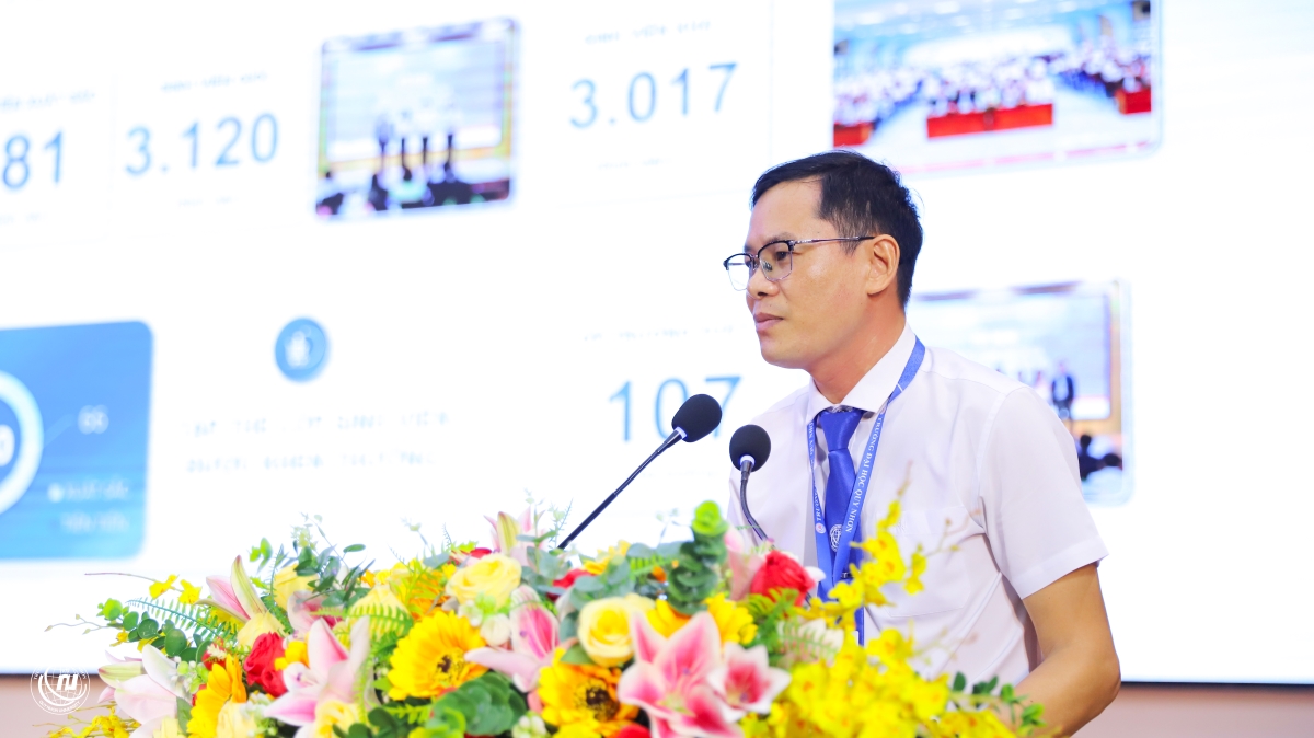 ThS. Nguyễn Khắc Khanh - Trưởng phòng P.CTSV&HTDN trình bày báo cáo kết quả tiêu biểu trong công tác sinh viên và phong trào thi đua năm học 2024 - 2025.