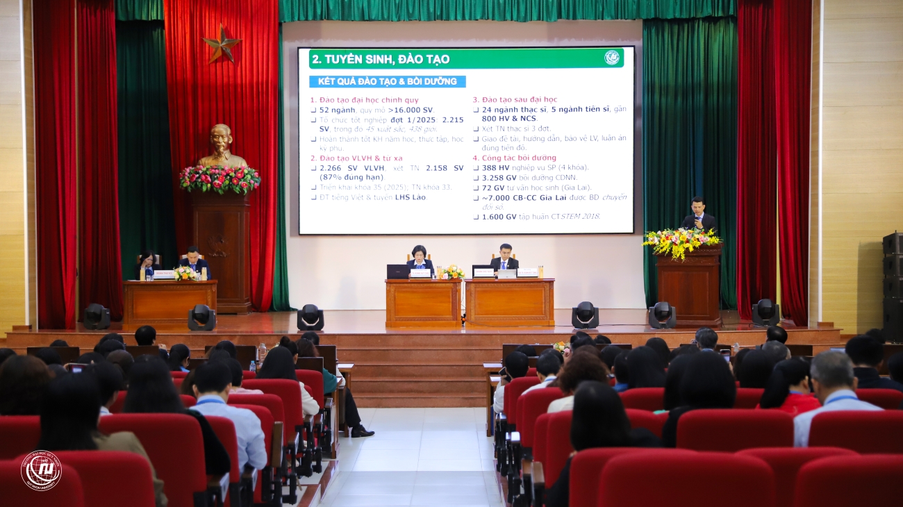 SHL - Phát huy tinh thần dân chủ, đoàn kết và trách nhiệm, Hội nghị đại biểu viên chức, người lao động Trường Đại học Quy Nhơn năm học 2025 - 2026 diễn ra vào ngày 25/10/2025 với sự tham dự của 150 đại biểu đại diện cho toàn thể viên chức, người lao động (VCNLĐ) Nhà trường. Hội nghị không chỉ là dịp tổng kết những kết quả đạt được trong năm học vừa qua mà còn là dịp để tập thể lãnh đạo Nhà trường lắng nghe, trao đổi và thống nhất định hướng phát triển trong giai đoạn mới. Với sự đồng thuận cao, các đại biểu đã thông qua Nghị quyết hội nghị, bầu Ban Thanh tra nhân dân nhiệm kỳ 2025 - 2027 và phát động phong trào thi đua năm học mới, thể hiện quyết tâm xây dựng QNU ngày càng phát triển bền vững, khẳng định vị thế trong khu vực và cả nước.