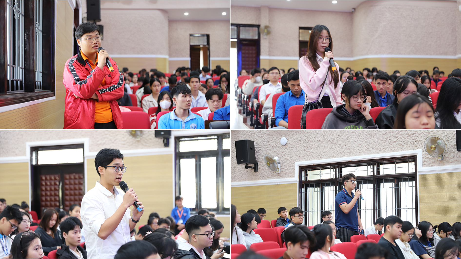 Các sinh viên tham dự đặt câu hỏi về những vấn đề quan tâm, thắc mắc về chương trình đào tạo, môi trường học tập, điều kiện sinh hoạt và các chính sách hỗ trợ.