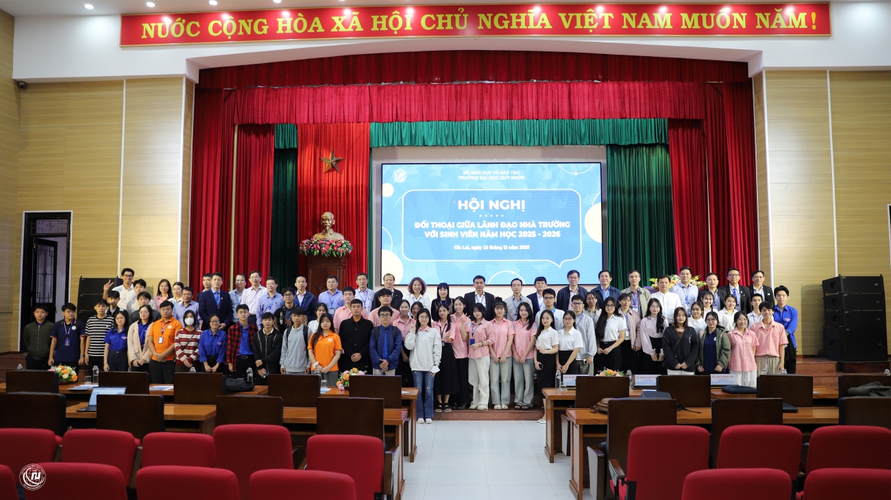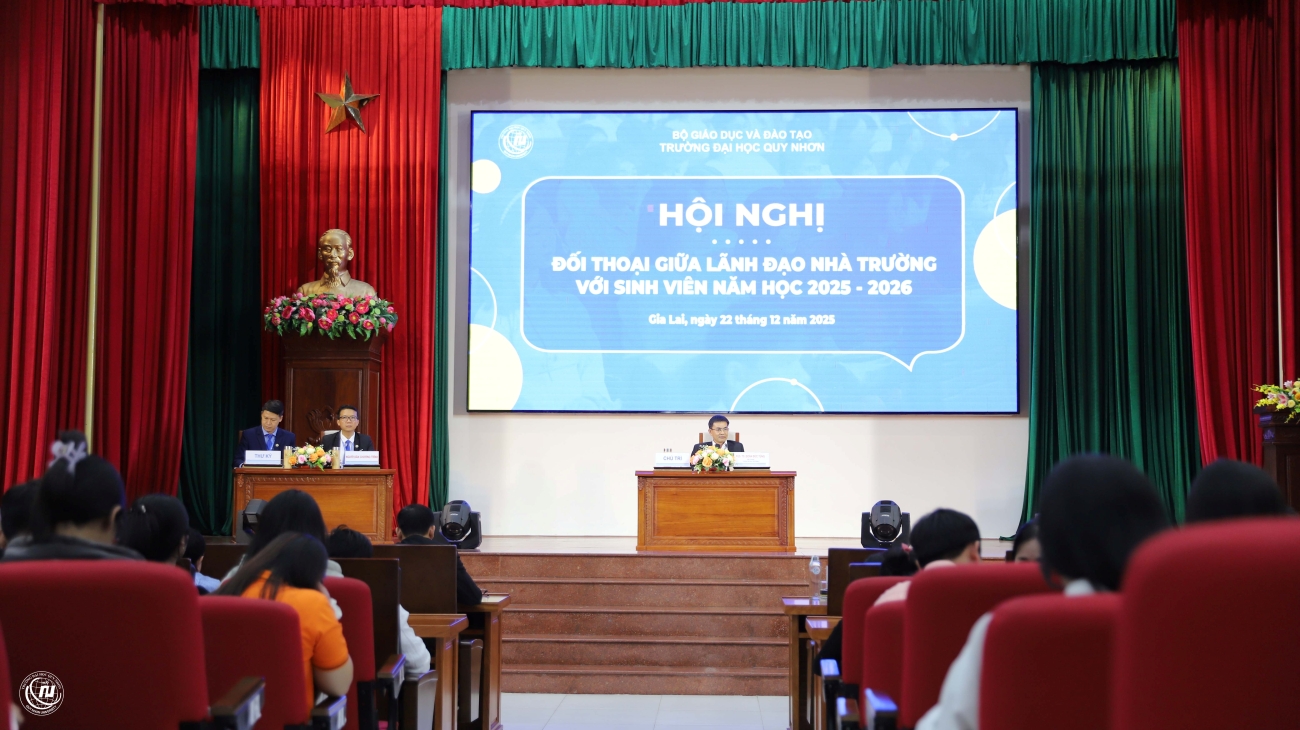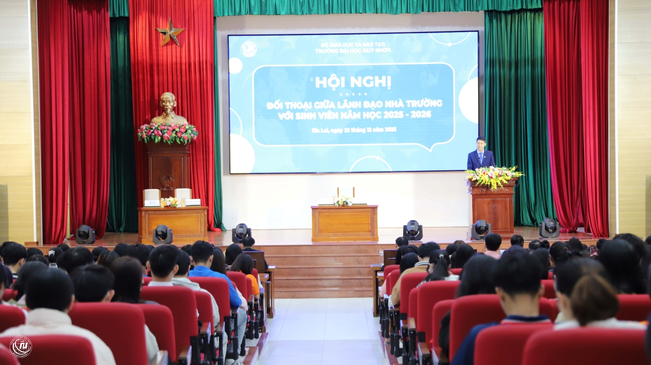 (SHL) – Phát huy tinh thần dân chủ trong hoạt động của Nhà trường, ngày 22/12/2025, Trường Đại học Quy Nhơn đã tổ chức Hội nghị đối thoại giữa lãnh đạo và sinh viên năm học 2025 - 2026. Đây là diễn đàn chính thức để sinh viên trực tiếp trao đổi, bày tỏ ý kiến, gửi gắm kiến nghị, đồng thời để lãnh đạo Nhà trường trực tiếp lắng nghe, đồng hành và cùng sinh viên kiến tạo môi trường học tập - nghiên cứu ngày càng hiện đại, văn minh và bền vững.