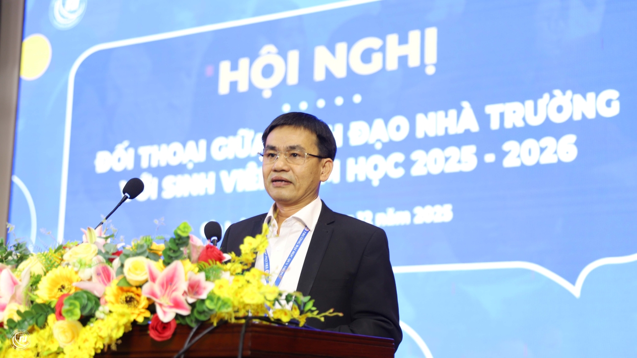 Phát biểu tại hội nghị, PGS.TS. Đoàn Đức Tùng nhấn mạnh rằng Nhà trường luôn quan tâm, đồng hành và tạo mọi điều kiện thuận lợi để sinh viên yên tâm học tập, bồi dưỡng, nghiên cứu và rèn luyện. Hiệu trưởng khẳng định, sinh viên chính là trung tâm của mọi hoạt động giáo dục - đào tạo, là động lực để Nhà trường không ngừng đổi mới, nâng cao chất lượng giảng dạy và phục vụ.