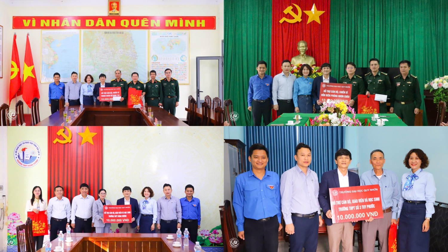Trong khuôn khổ chuyến công tác, Trường Đại học Quy Nhơn đã trao tổng kinh phí hỗ trợ trị giá 40 triệu đồng, tương ứng 10 triệu đồng cho mỗi đơn vị. Đây là nguồn động viên tinh thần, thể hiện sự tương thân tương ái và trách nhiệm xã hội của Nhà trường đối với các đơn vị và cộng đồng địa phương.