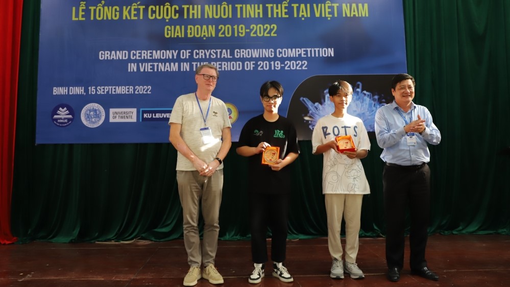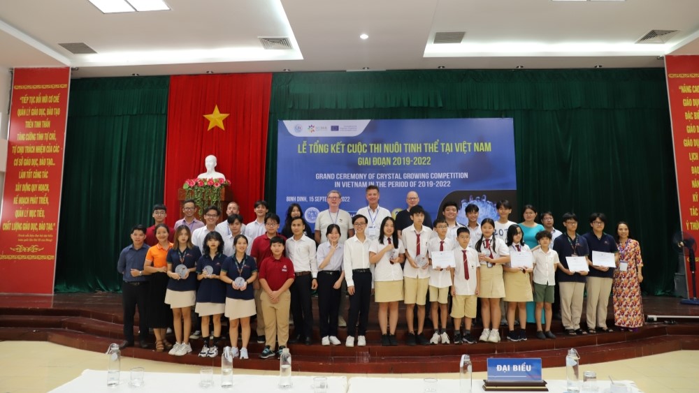 At the summation ceremony held on the afternoon of September 15, QNU and the MOMA project management board conducted the awarding ceremony of the Vietnam crystal growing competition for the academic year 2021-2022. The contest aimed to honor individuals/groups who had recorded many achievements in the Vietnam Crystal Growing - Science Nurture competition.