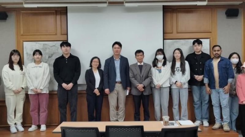 A photo of Prof.Dr. Vo Vien (sixth from right) and Dr. Phan Thi Thuy Trang (fourth from left) at Hanyang University