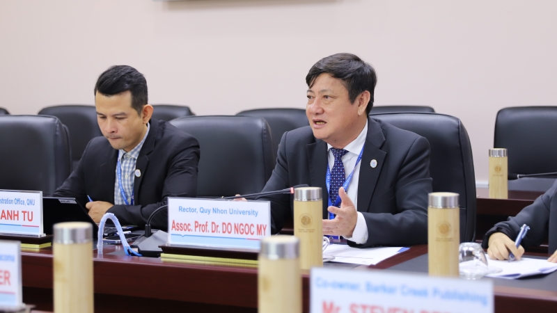 Speaking at the meeting, Assoc.Prof.Dr. Do Ngoc My said that in the development axis of Binh Dinh province, QNU had accompanied the province in such fields as logistics, renewable energy, automobile technology, and tourism for many years, adding that with the advantage of such fields as electronics and telecommunications, electrical engineering, and information technology, QNU would place importance on training engineers to welcome the trend in human resources in the semi-conductor chip industry in the coming time.