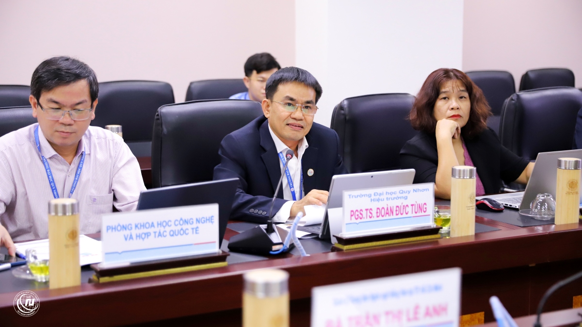 Tham dự buổi làm việc, về phía Trường Đại học Quy Nhơn có PGS.TS. Đoàn Đức Tùng - Hiệu trưởng; Trưởng các đơn vị: Phòng KHCN&HTQT, HC-TH, Khoa KHXH&NV, Khoa Ngoại ngữ.