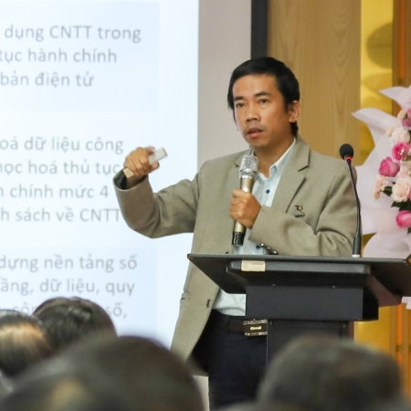 PGS.TS. Hồ Xuân Quang – Trưởng phòng P.Đào tạo sau đại học: Sự phát triển mạnh mẽ của cuộc CMCN 4.0 trên phạm vi toàn cầu với công nghệ lõi là Khoa học dữ liệu (Data Science), Dữ liệu lớn (Big Data), Điện toán đám mây (Cloud Computing), Internet vạn vật (IoT), Trí tuệ nhân tạo (AI) tác động sâu sắc đến nhận thức và hành động của con người. Thực tiễn cho thấy, Khoa học dữ liệu ngày càng trở nên quan trọng, có ý nghĩa to lớn đối với khoa học và sự vận hành của các tổ chức, tập đoàn, doanh nghiệp, các cơ sở giáo dục đại học, đặc biệt là quá trình chuyển đổi số của quốc gia hiện nay.