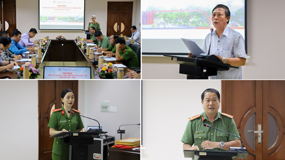 Tại hội nghị, ThS. Cao Kỳ Nam – Trưởng phòng Phòng Công tác chính trị - Sinh viên báo cáo công tác quản lý sinh viên nội trú, ngoại trú năm học 2023-2024. Trong những năm qua, công tác quản lý người học ở nội trú, ngoại trú luôn được Nhà trường đặc biệt quan tâm. Nhà trường duy trì việc liên hệ với chính quyền, công an các cấp để nắm bắt tình hình người học ở nội trú, ngoại trú, góp phần đảm bảo an ninh trật tự (ANTT) trên địa bàn. Năm học 2023 - 2024, toàn trường có 14139 sinh viênđại học chính quy, trong đó có 2258 sinh viên nội trú tại ký túc xá của Trường, 4000 sinh viên thường trú và trên 7300 sinh viên tạm trú. Phần lớn sinh viên nội trú có ý thức chấp hành tốt, không vi phạm nội quy ký túc xá, quy định của Nhà trường, đảm bảo tuân thủ ANTT. Các sinh viên ngoại trú có ý thức chấp hành tốt các quy định của Nhà trường và địa phương nơi lưu trú.