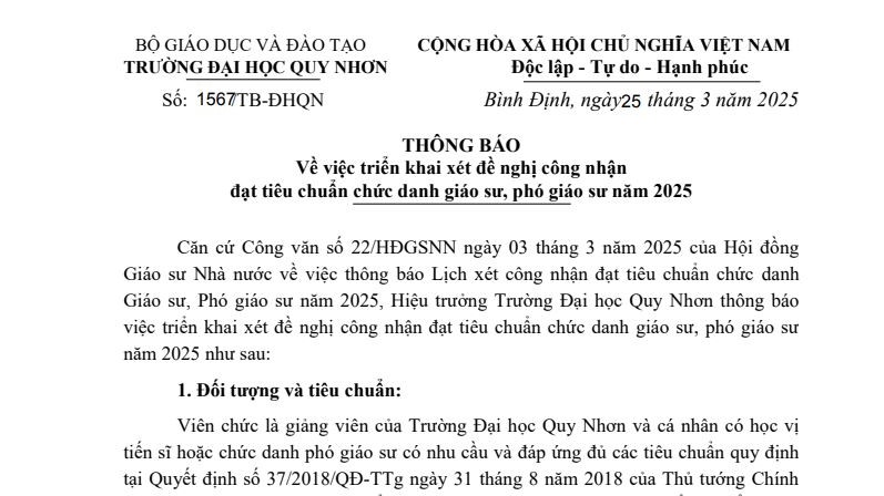 TB4376 - Về việc sinh viên Trường Đại học Quy Nhơn đăng ký học trước một số học phần của chương trình đào tạo trình độ thạc sĩ 05/12/2025