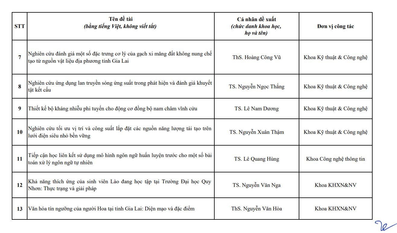 Căn cứ Công văn số 2656/ĐHQN-KHCNHTQT ngày 04 tháng 9 năm 2025 của Hiệu trưởng Trường Đại học Quy Nhơn về việc đề xuất đề tài KH&CN cấp Trường năm 2026;