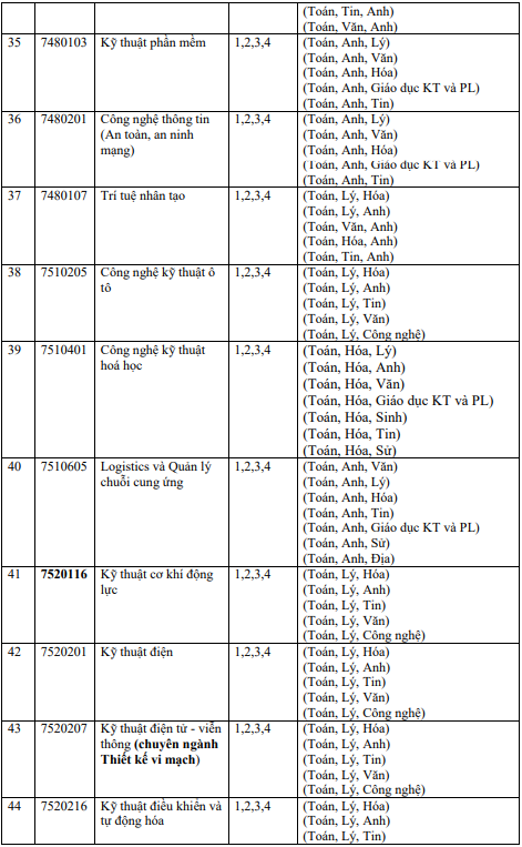 4. Các ngành, tổ hợp môn xét tuyển