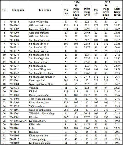+ Phương thức 2 (PT2 - mã 200): Xét tuyển theo kết quả học tập 3 năm THPT (học bạ) theo quy định của Bộ GD&ĐT, các ngành đào tạo giáo viên không xét tuyển PT2.