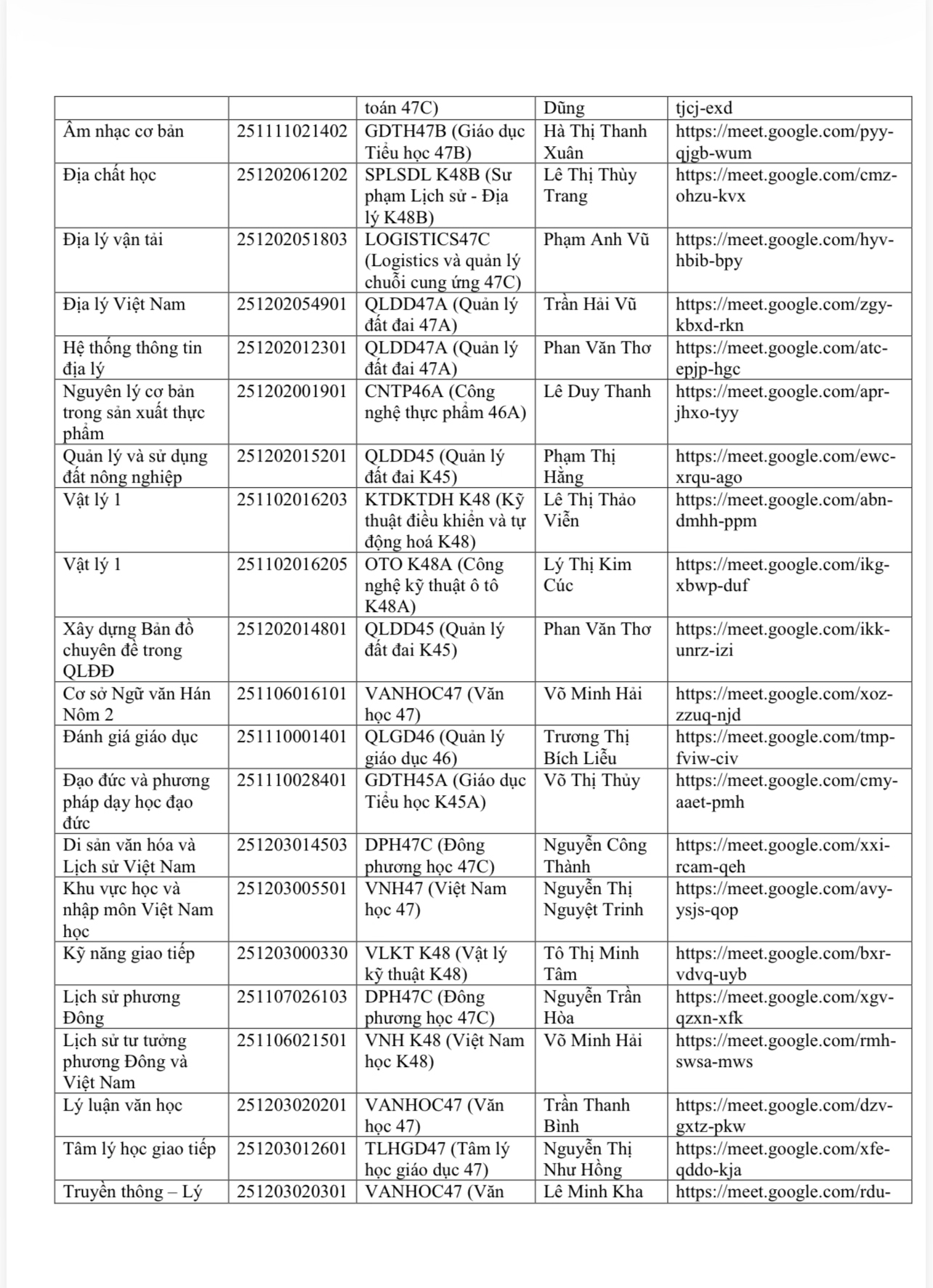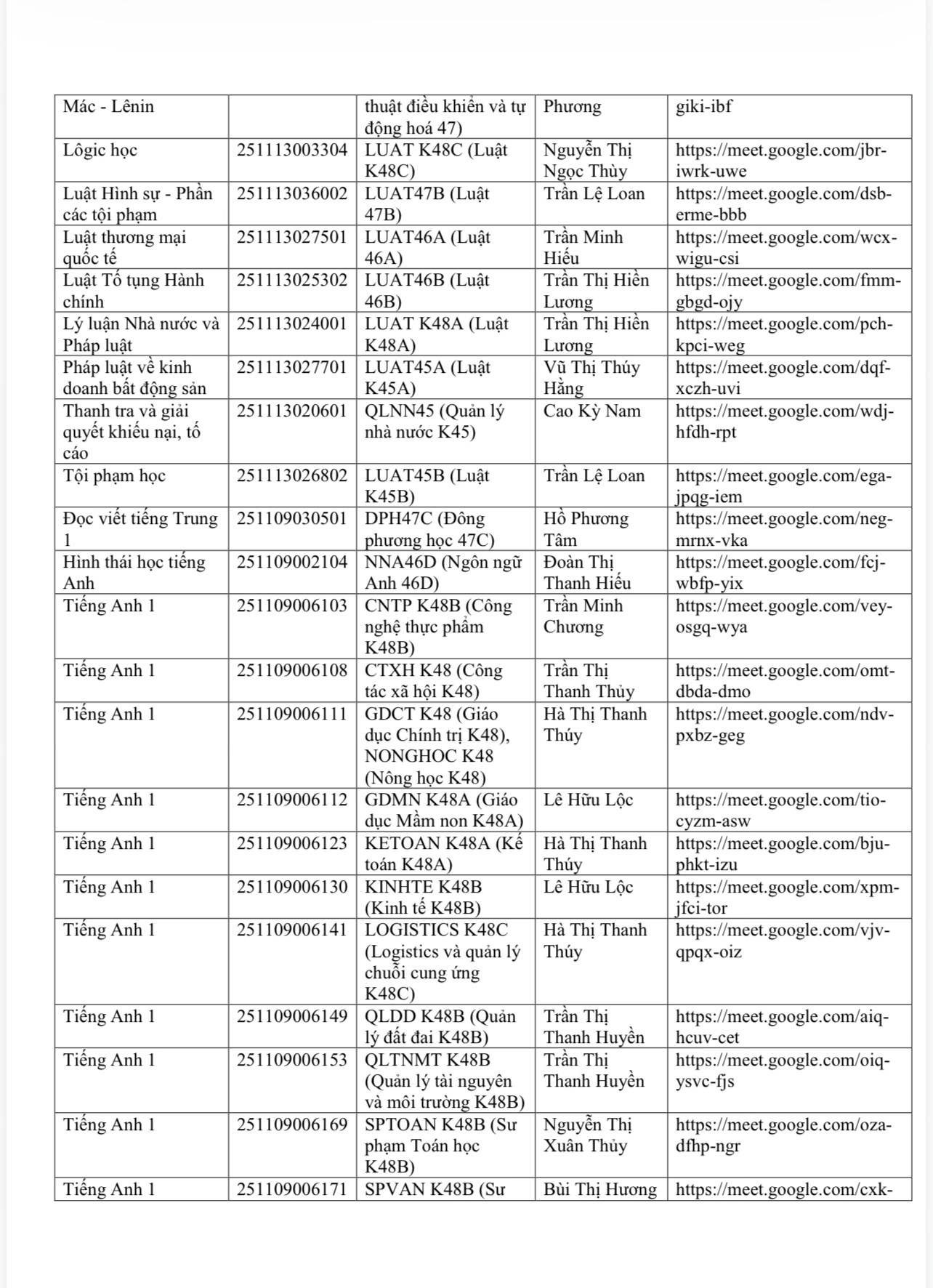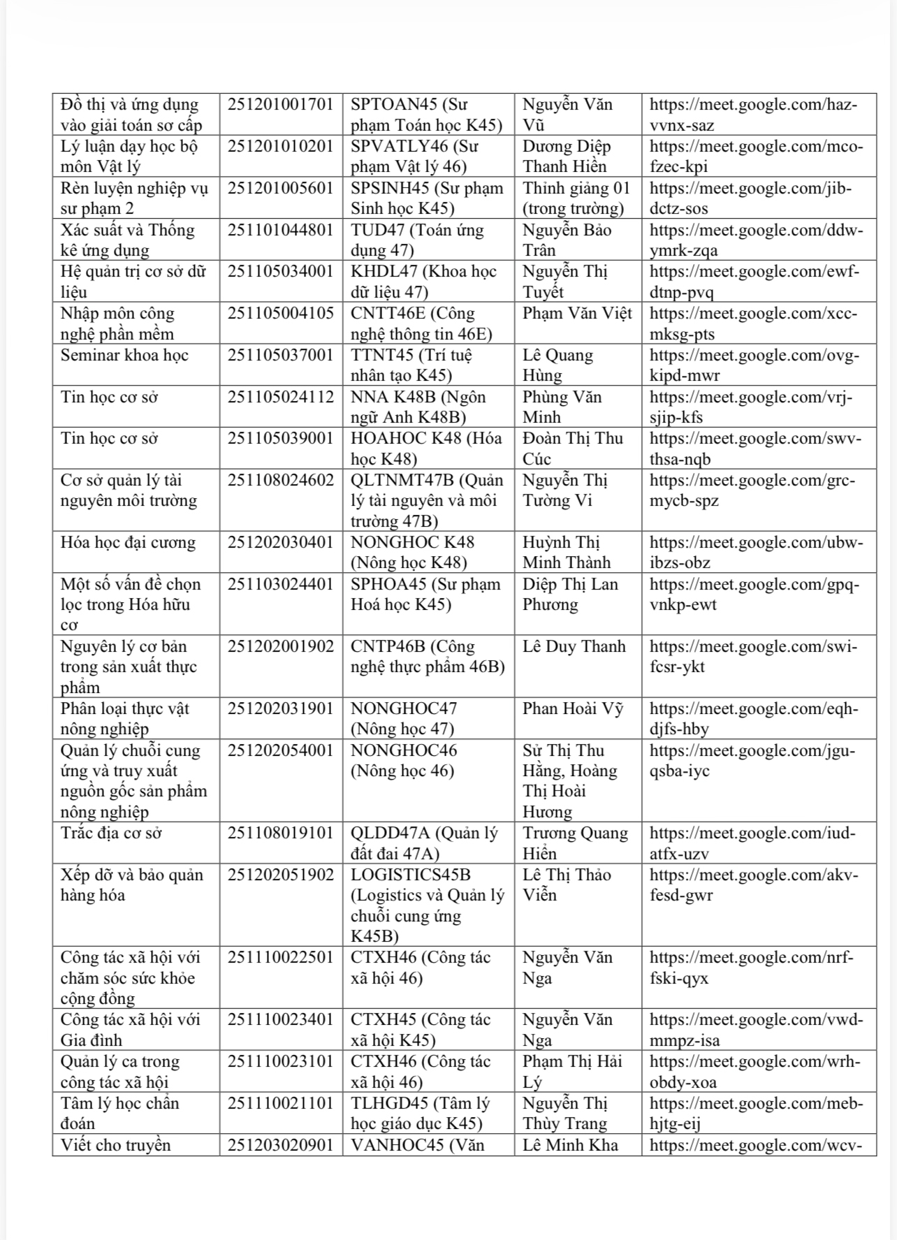 3. Ngoài ra, các lớp học phần (151 lớp) học tại các phòng A3 - 301, 302, 305, 306, 307 và A8 - 52, 53 dạy và học online qua Google Meet (Danh sách đính kèm).